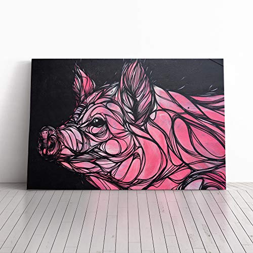 Big Box Art Canvas Print Wall Art Pig Artwork | Mounted and Stretched Box Frame Picture | Home Decor for Kitchen, Living, Dining Room, Bedroom, Hallway, Multi-Colour, 24x16 Inch
