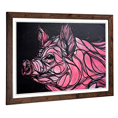 Big Box Art Framed Print of Pig Artwork Design | Wall Art Picture | Home Decor for Kitchen, Living, Dining Room, Lounge, Bedroom, Hallway, Office, Walnut, A2 / 24.5x18 Inch / 62x45cm