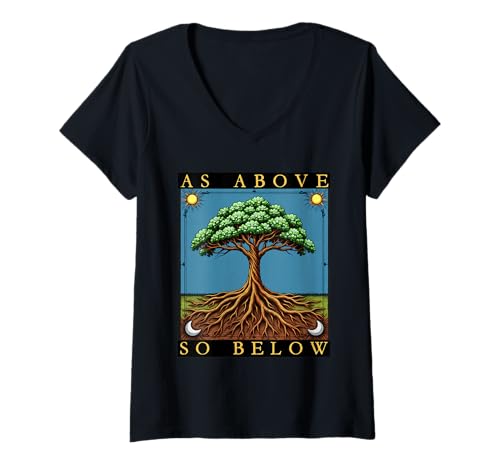 Women's As Above So Below Tree of Life Tee Gothic Tarot Style V-Neck T-Shirt