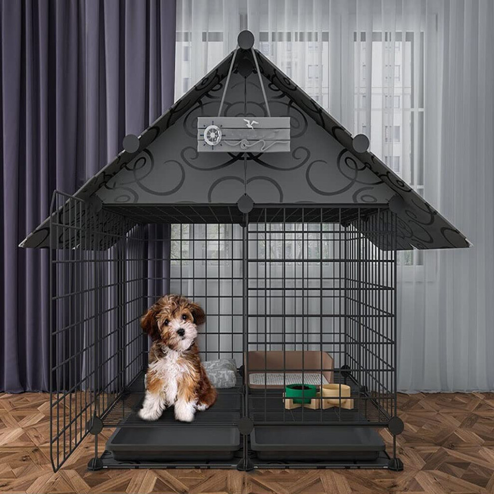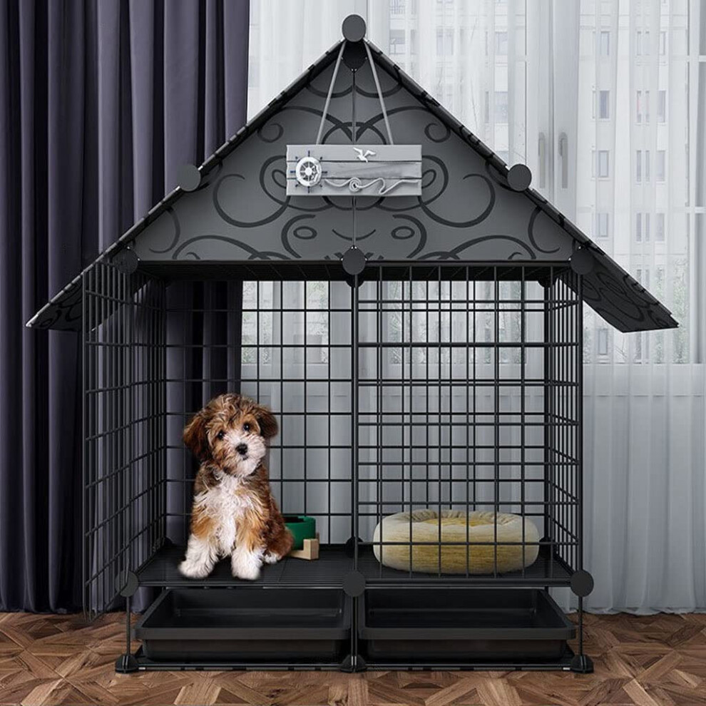 Warm as Ever Dog Cage for Small and Medium Dogs, Indoor Outdoor Dog Fence, Black 75 x 75 x 95 cm Size