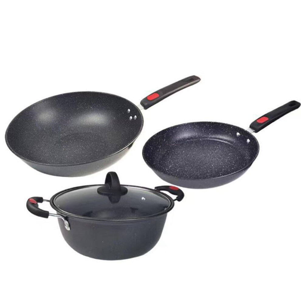 Household Set pots NonStick Frying pan Frying pan Flat Iron pan Maifan Stone ThreePiece Pot Set Combination Gift Pot Warm as Ever