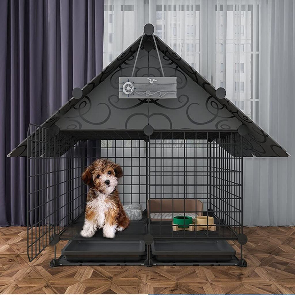 Warm as Ever Dog Cage, Dog Fence, Suitable for Small and Medium Dogs, Dog Cage for Outdoor and Indoor, Various (Size: Black, 75 x 75 x 85 cm)