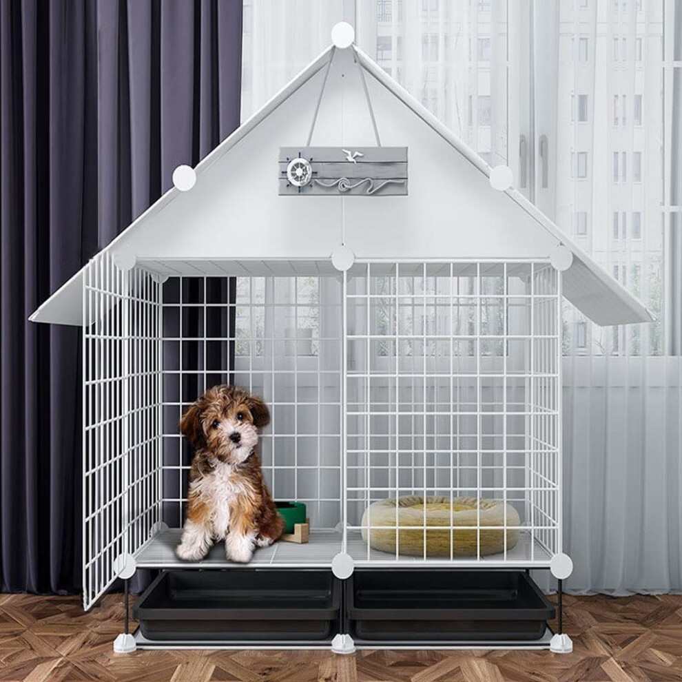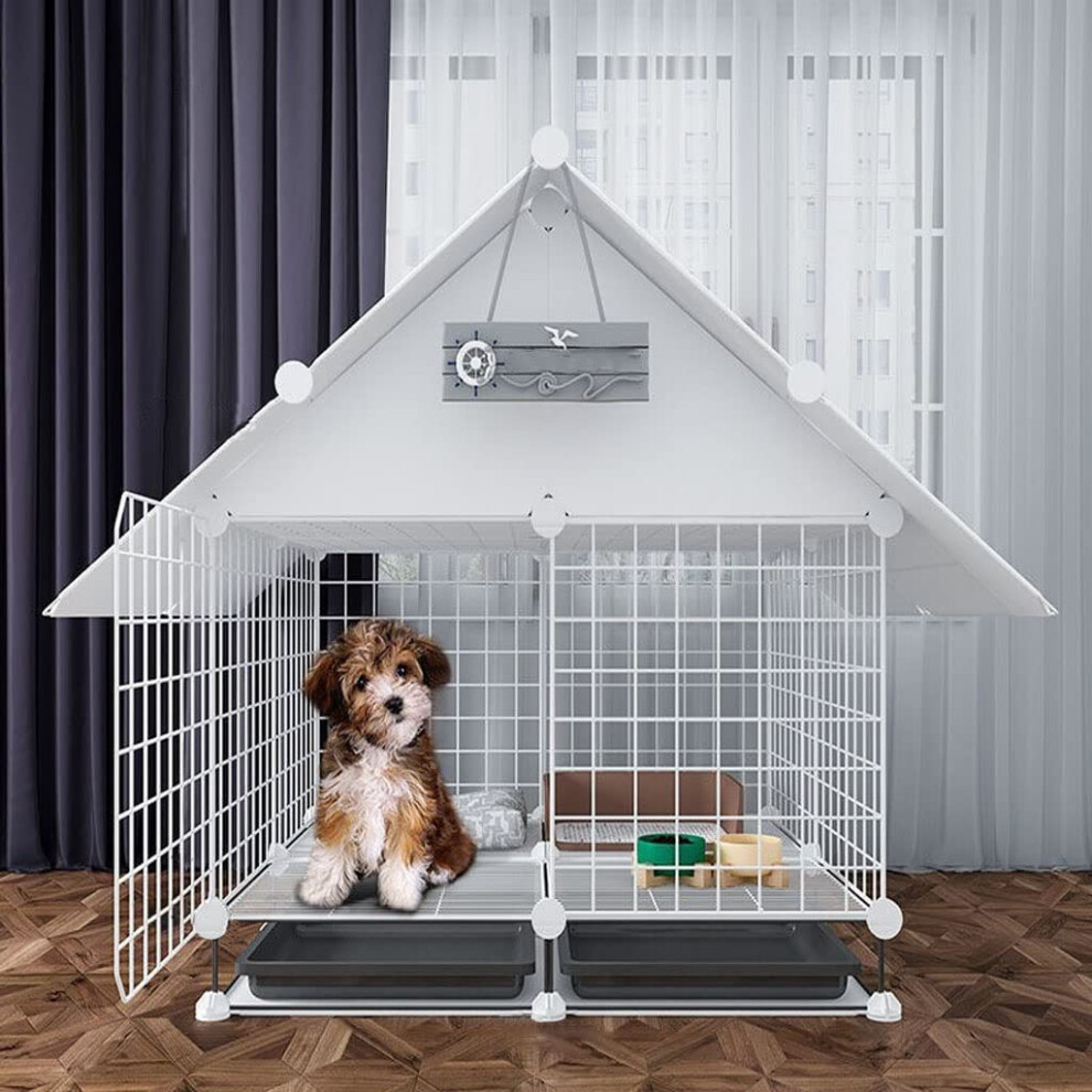 Warm as Ever Dog Cage - White Indoor Outdoor Dog Fence for Small Medium Breeds, 75 x 75 x 95 cm Size