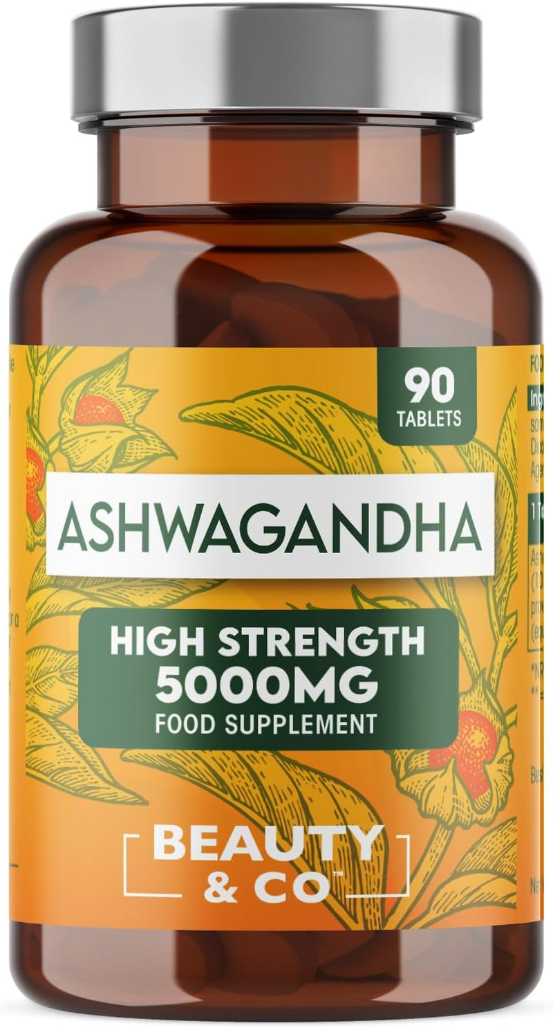 Ashwagandha 5000mg 90 Tablets, Super High Strength Ashwagandha- 3 Months Supply from Beauty & Co, Pure Ashwagandha, Vegan, Made in The UK.