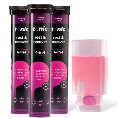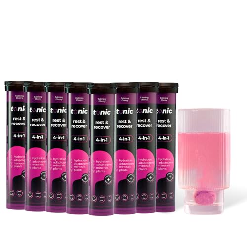 Tonic Health Rest and Recovery Effervescent Tablets - 300mg Elemental Magnesium, Ashwagandha, Lemon Balm - No Sugar, Magnesium Glycinate - Relax and Recharge, Calming Cherry 20 Count