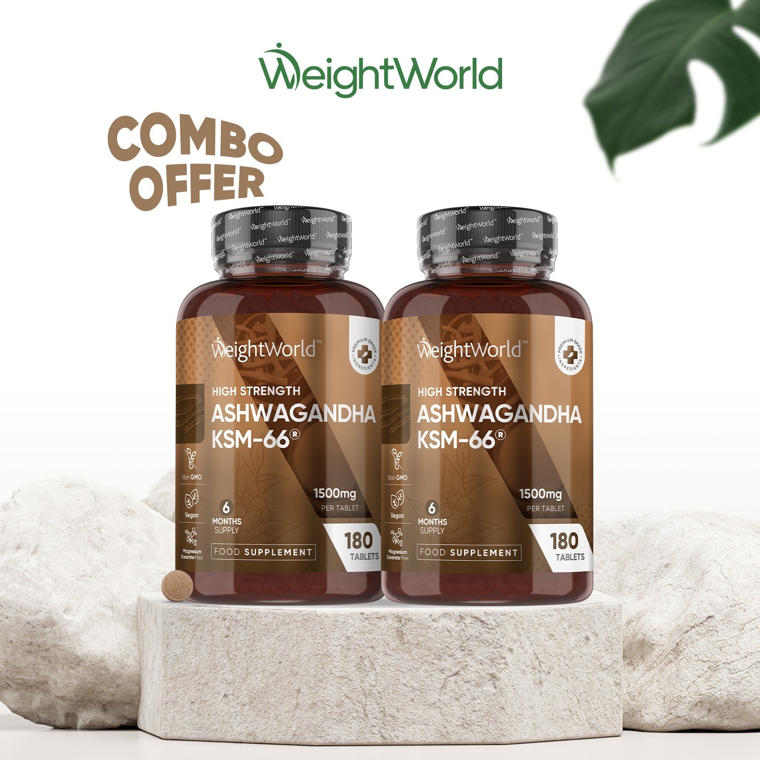 Ashwagandha KSM-66 1500mg - 6 Months Supply - 180 Tablets - 1 Tablet per Day - Easy to Swallow - Ashwagandha Supplement for Men & Women - Vegan, Non-GMO & Magnesium Stearate-Free