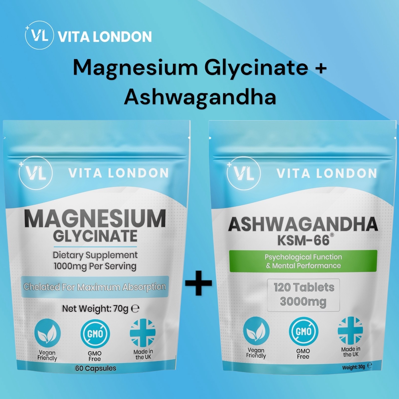 Organic Ashwagandha KSM-66 Tablets + Magnesium Glycinate Capsules - 2pk Bundle