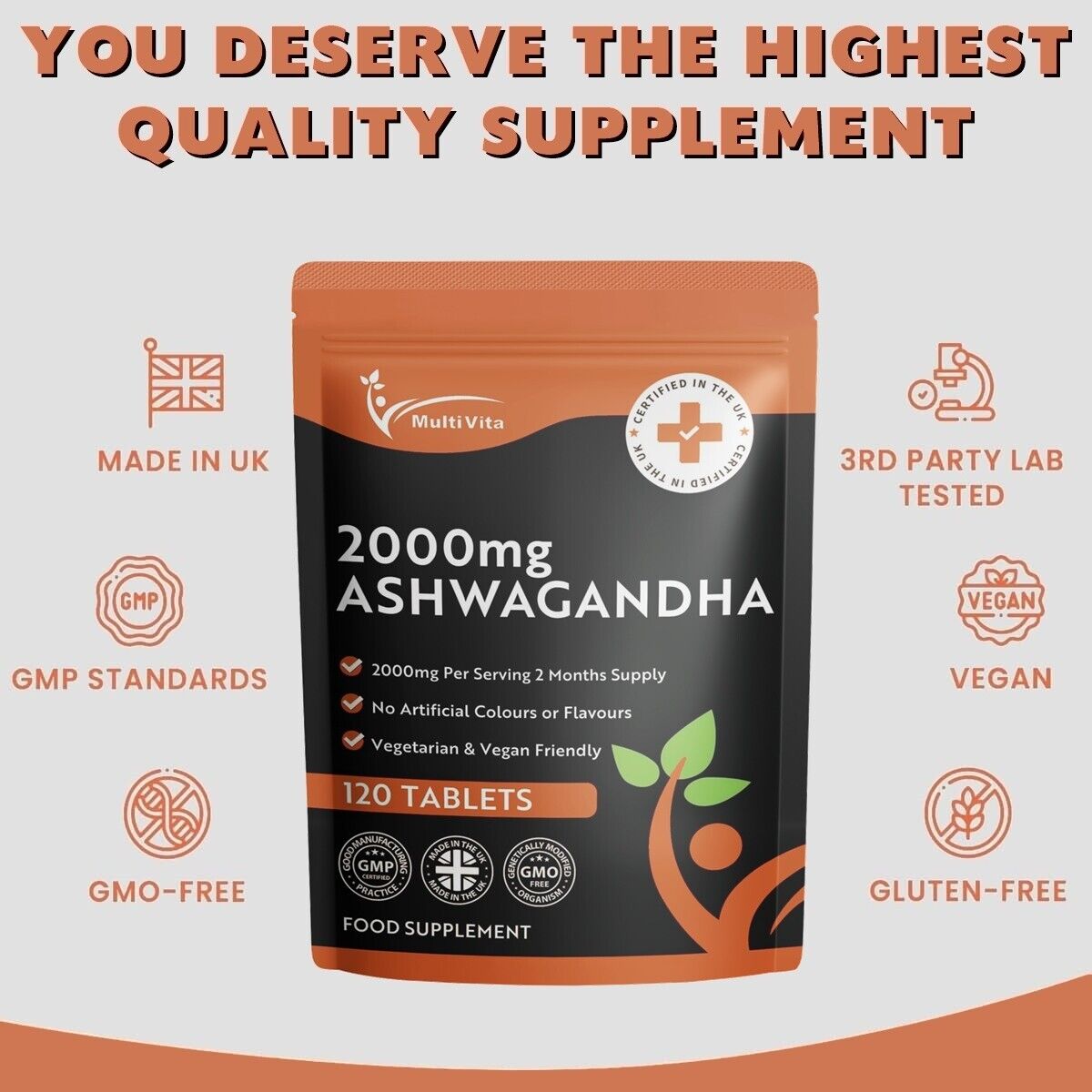Ashwagandha 2000mg 120 Vegan Tablets Pure Root Extract High Strength Supplement