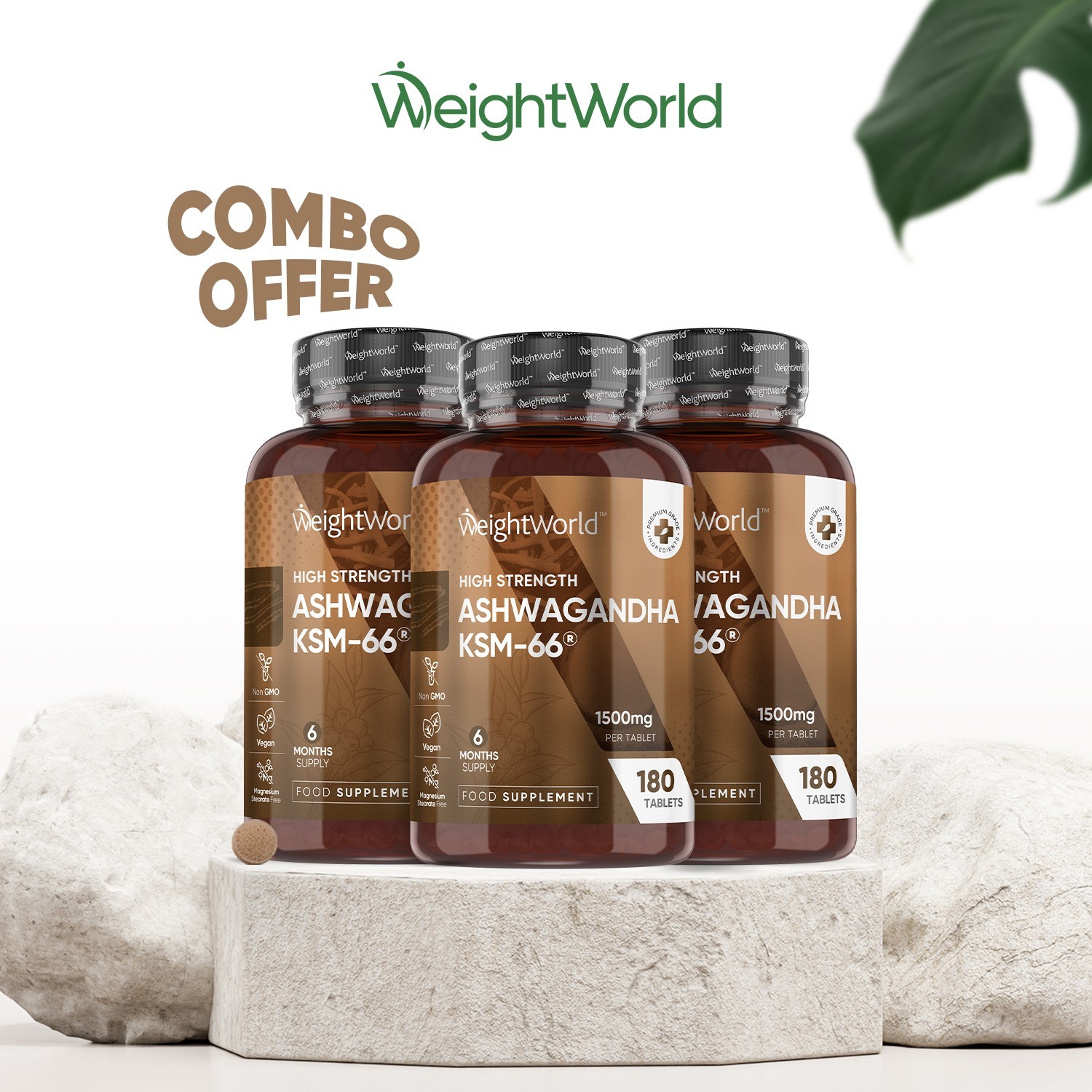 Ashwagandha KSM-66 1200mg - 180 Vegan Root Extract High Strength Tablets