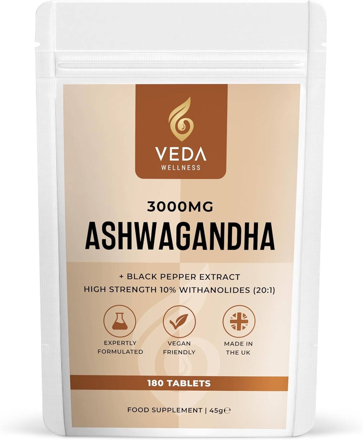 Pure Ashwagandha Extract 180 Tablets 3000Mg - 10% Withanolides with Black Pepper