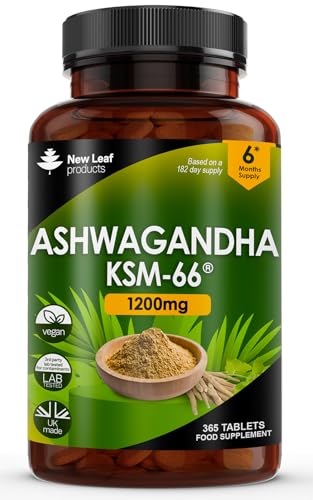 Ashwagandha KSM-66 1200mg - 365 Vegan Root Extract High Strength Tablets
