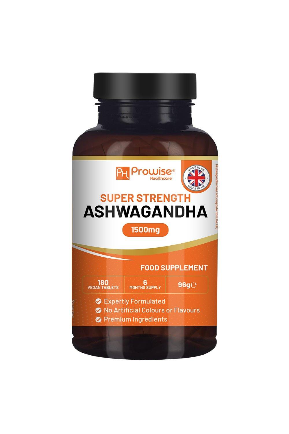 Ashwagandha 1500mg 180 Vegan Tablets | 6 Months’ Supply | Pure High Strength Ashwagandha Root Extract | Made in UK by Prowise Healthcare