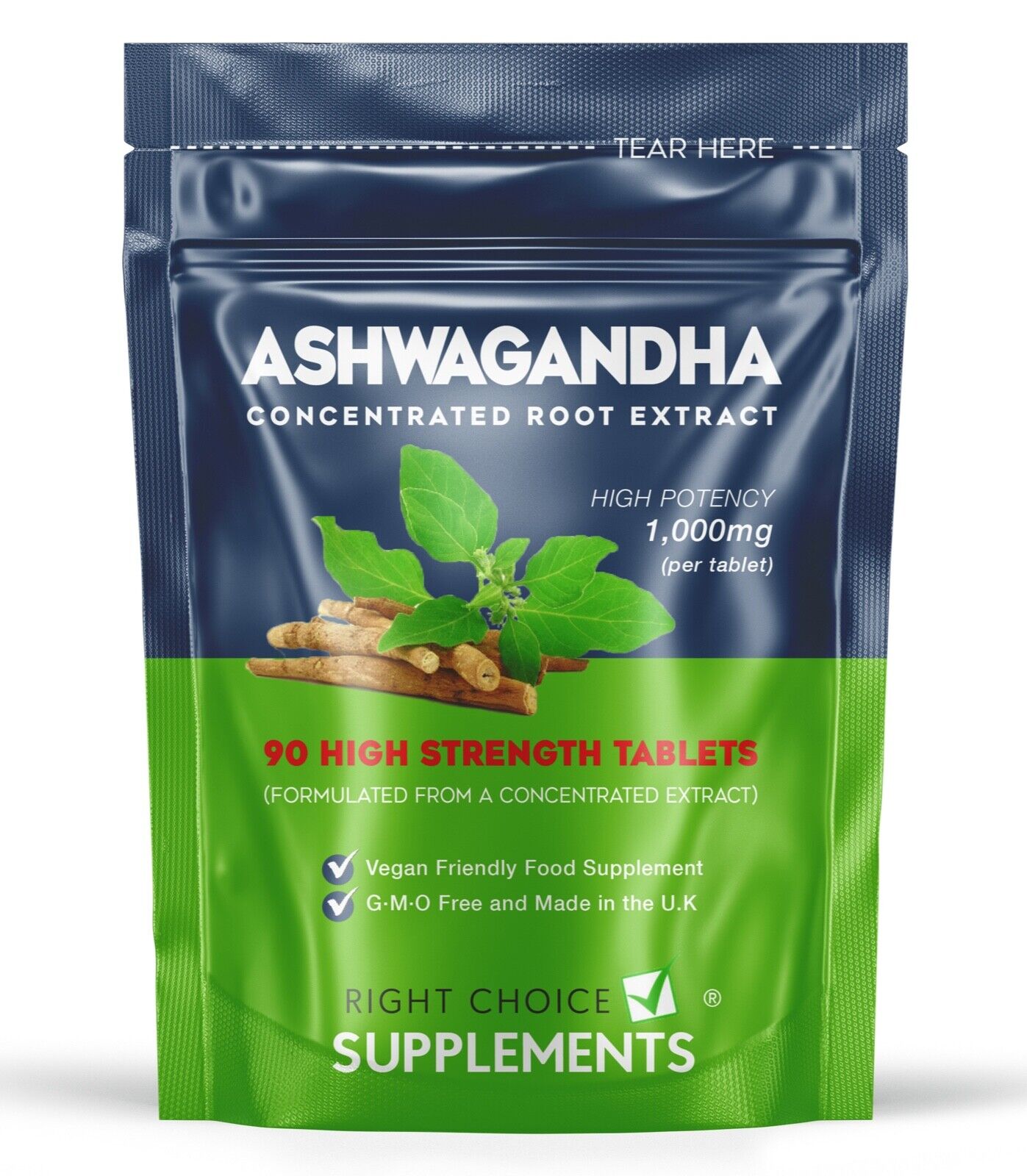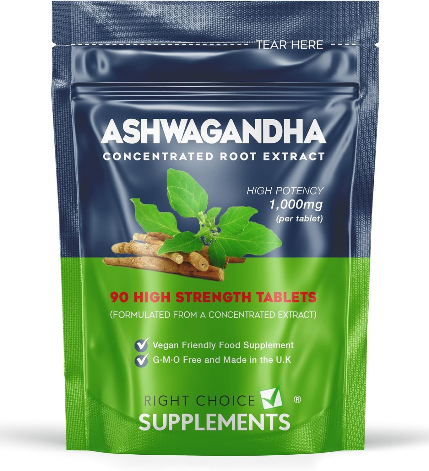 Ashwagandha Root Extract 1000mg 90 Tablets Vegan KSM66 Stress Supplement