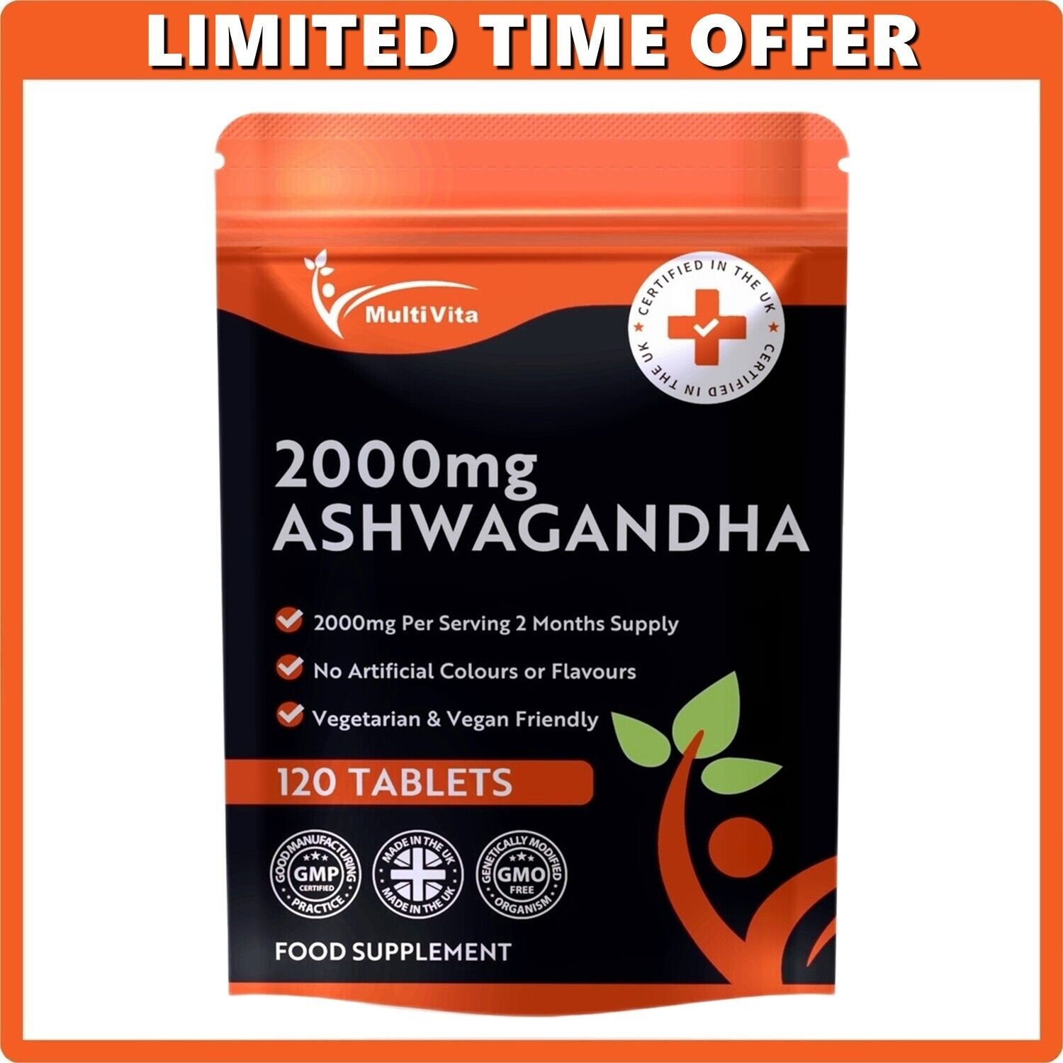 Ashwagandha 1000mg 120 Tablets Natural Anti Stress and Anti Anxiety Help Vegan