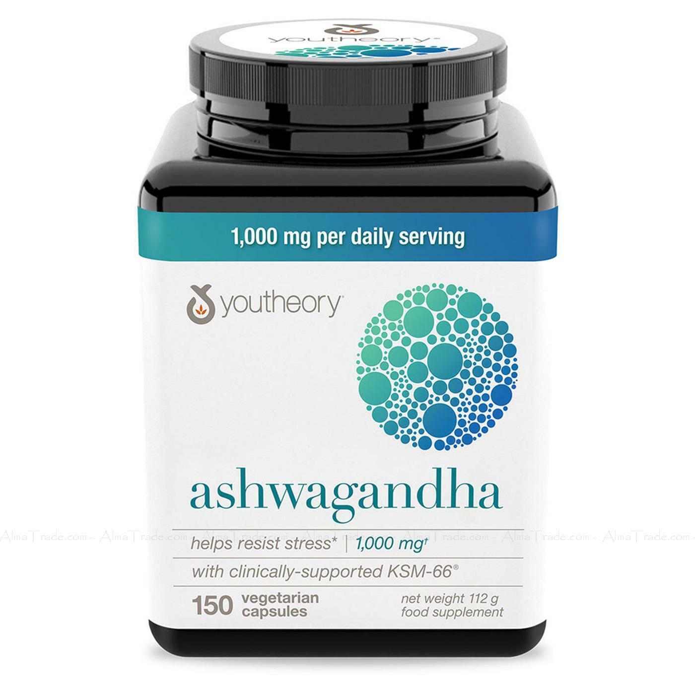 Youtheory Ashwagandha 1000mg Helps Resist Stress Vitality Supplement 150 Tablets