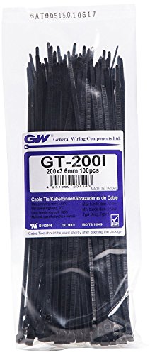 GW Wiring Products, Cable Tie 202 x 3,6 mm, Black, 1000 pcs, GT-200IB, Set of 1000 Pieces