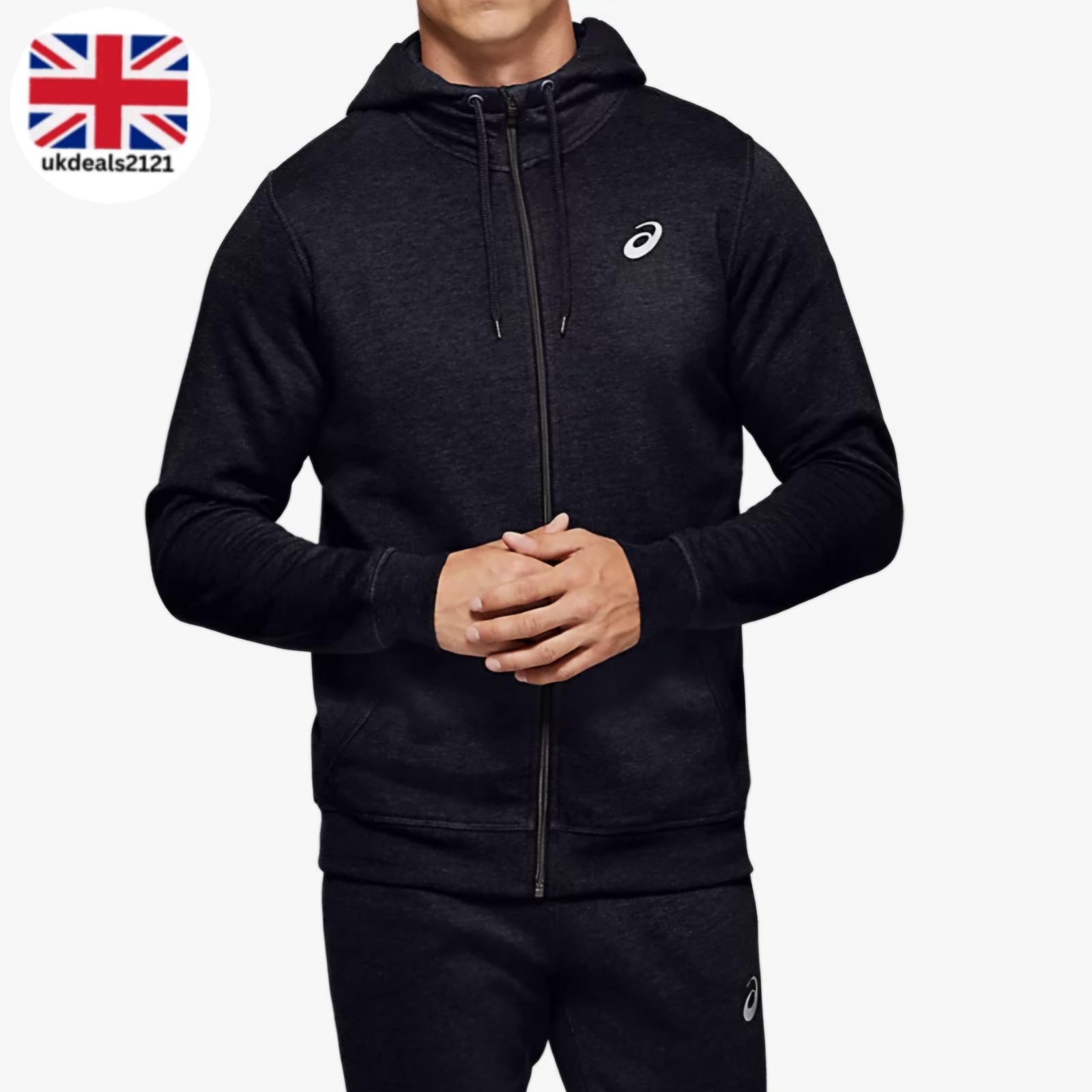 ASICS Men’s Full Zip Hoodie Jacket Large Black Sport Knit Training Free UK Post