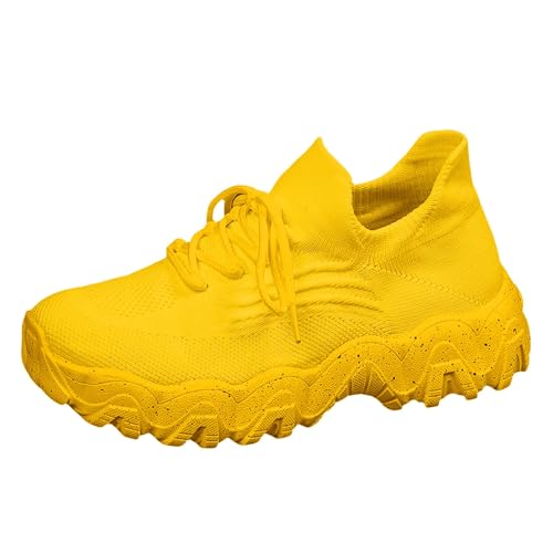 Xbemkste Slip-on trainers, women's sports shoes, breathable mesh with soft sole, cover in spliced colour, lightweight walking shoes, road running shoes, yellow, 2/2.5 UK