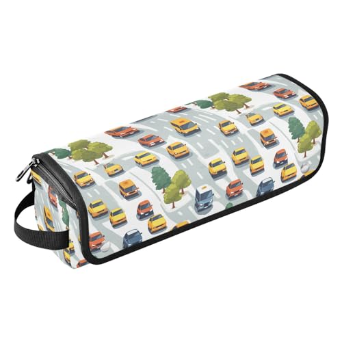 FRODOTGV Women's Removable 2-in-1 Curling Iron Travel Case and Heat Resistant Mat with Zipper Essentials Storage for Hot Tool Flat Irons Hair Volumizer Styler, Funny Avocado, Cute Pattern Cars Road