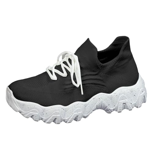 Xbemkste Slip-on trainers, women's sports shoes, breathable mesh with soft sole, cover in spliced colour, lightweight walking shoes, road running shoes, black, 2/2.5 UK
