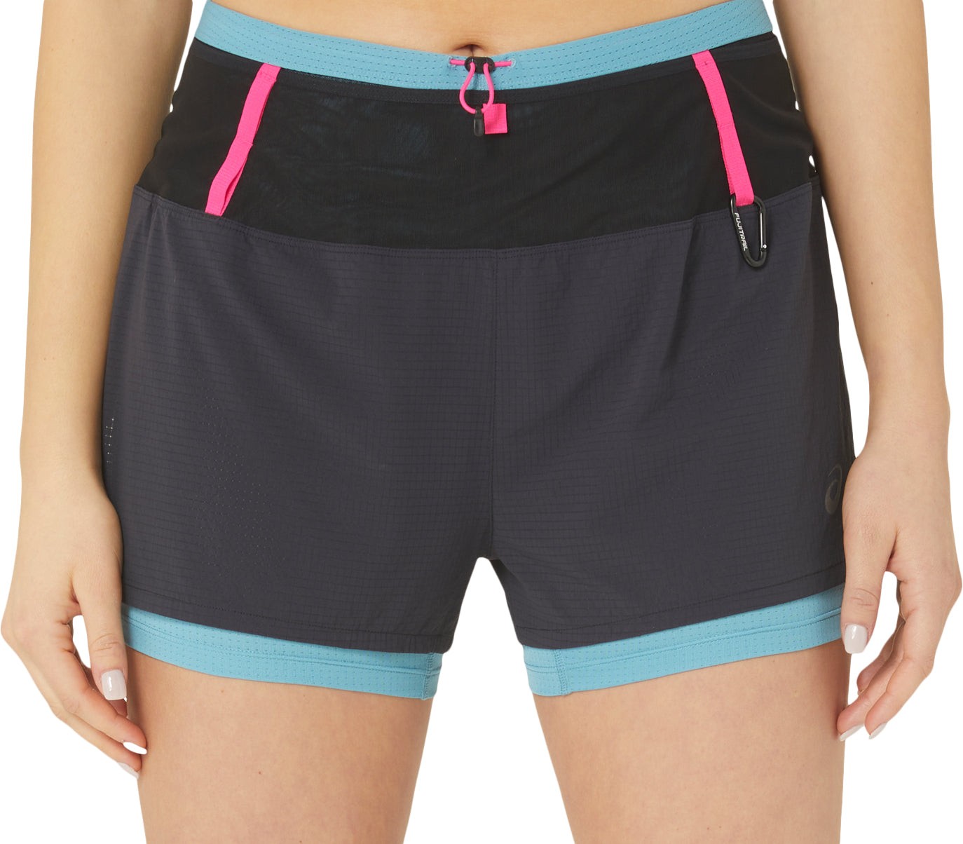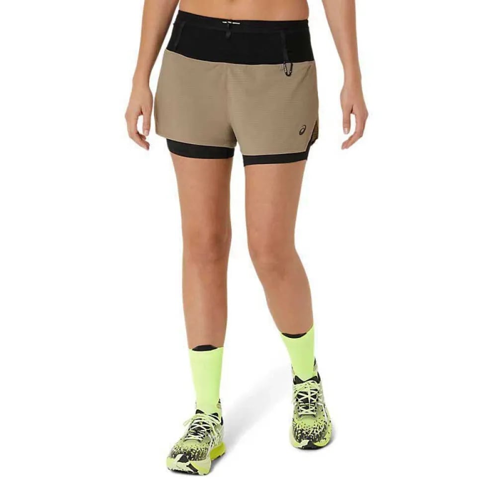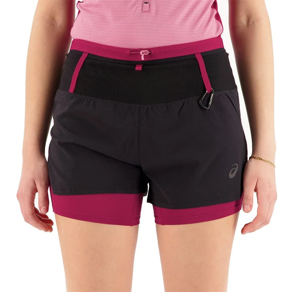 Asics FujiTrail Womens Running Shorts Black 2 In 1 Compression Twin Short Run