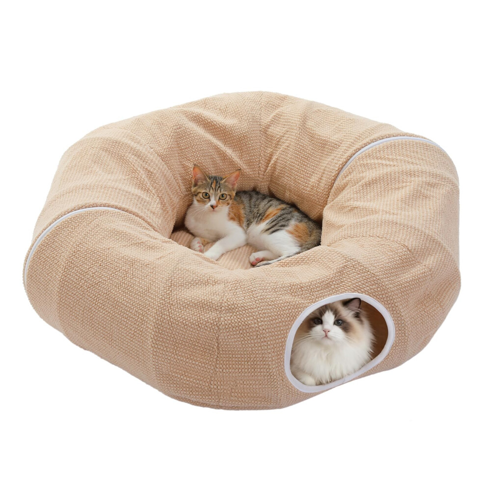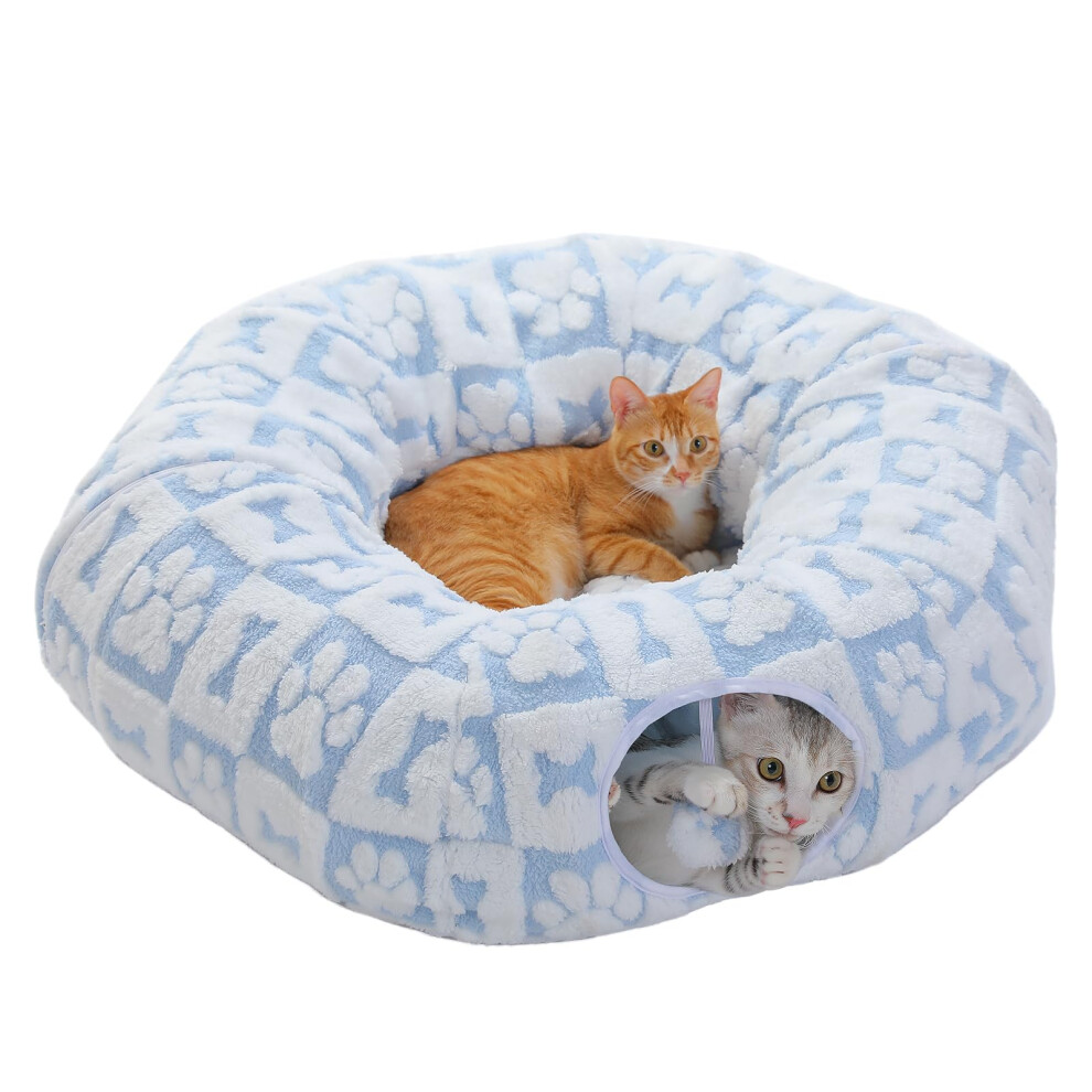 PAWZ Road Plush Cat Tunnel Bed for Indoor Cats, 2 in 1 Donut Cat Tunnel with Bed, Round Cat Play Tunnel Toy with Washable Cushion for Kittens,