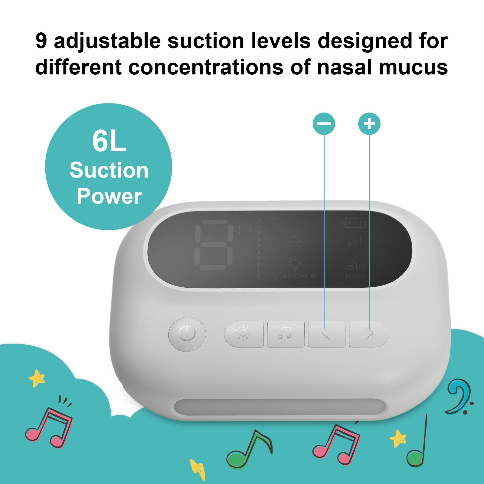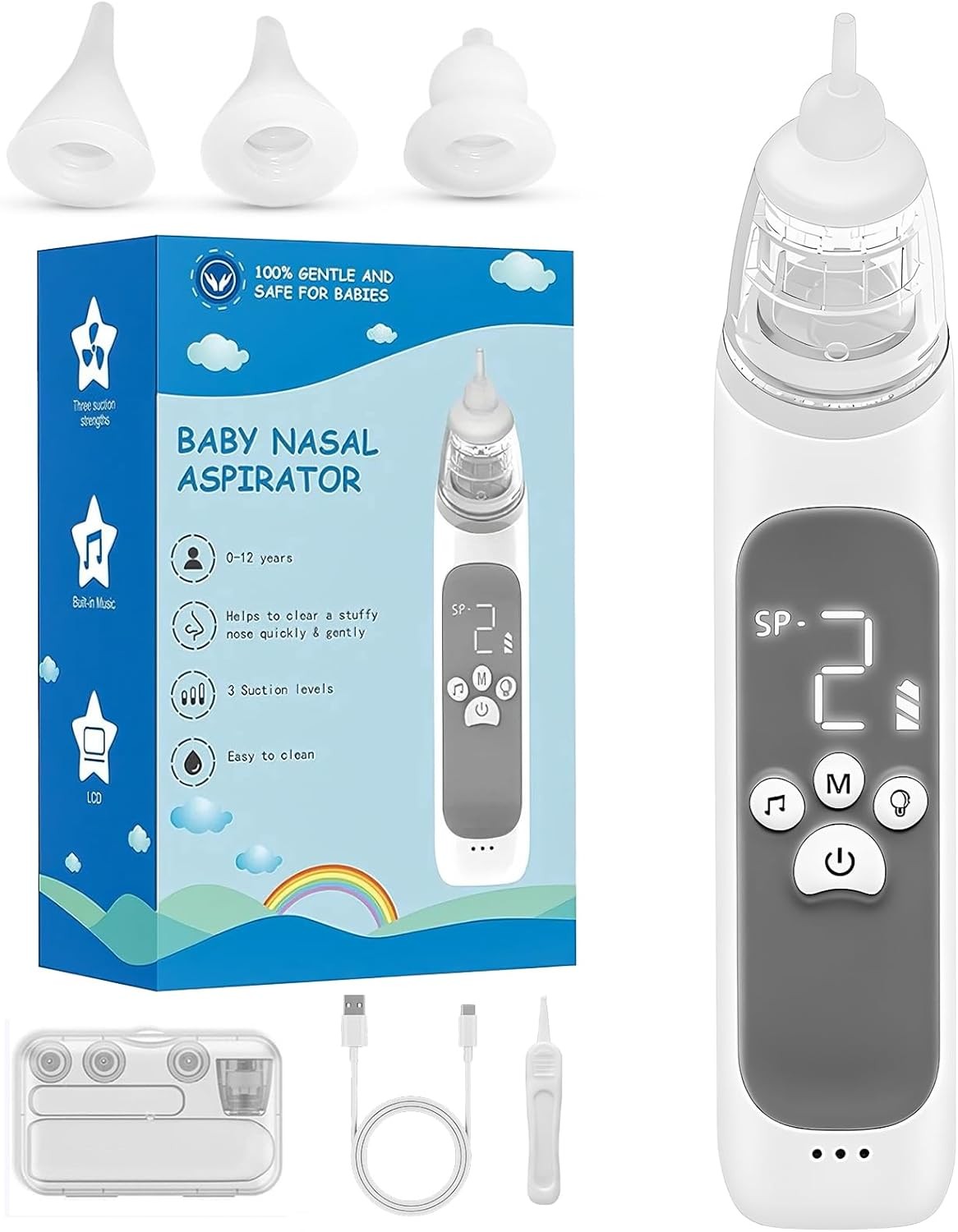 Electronic Infant Nose Aspirator Adjustable Suction Level Music Light Soothe