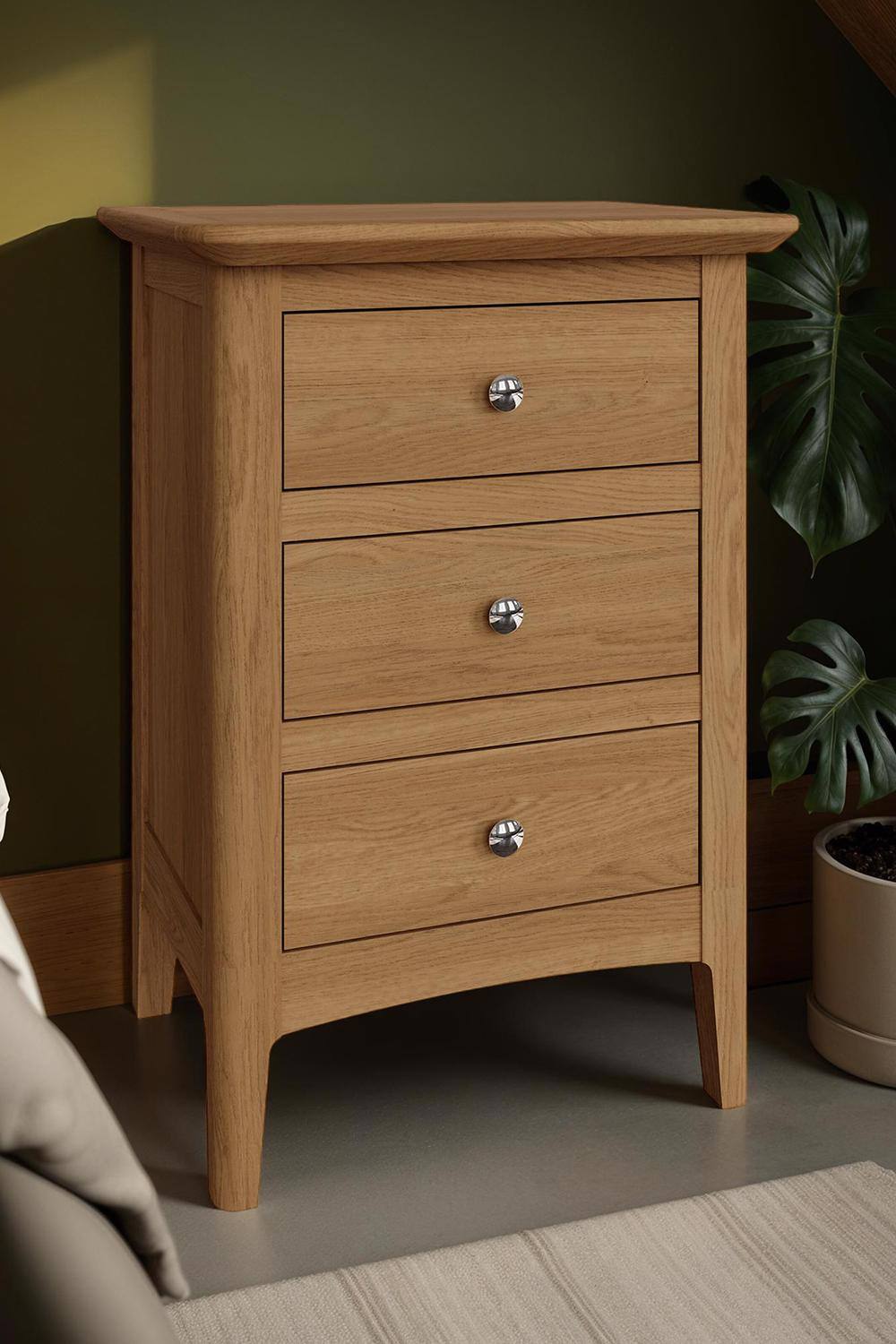 Hallowood Furniture Waverly Oak 3 Drawer Wooden Bedside Table, Solid Oak Bedside Cabinet, Small Chest of Drawers, Pre-Assembled Side Table with Storage for Bedroom, Hallway or Living Room