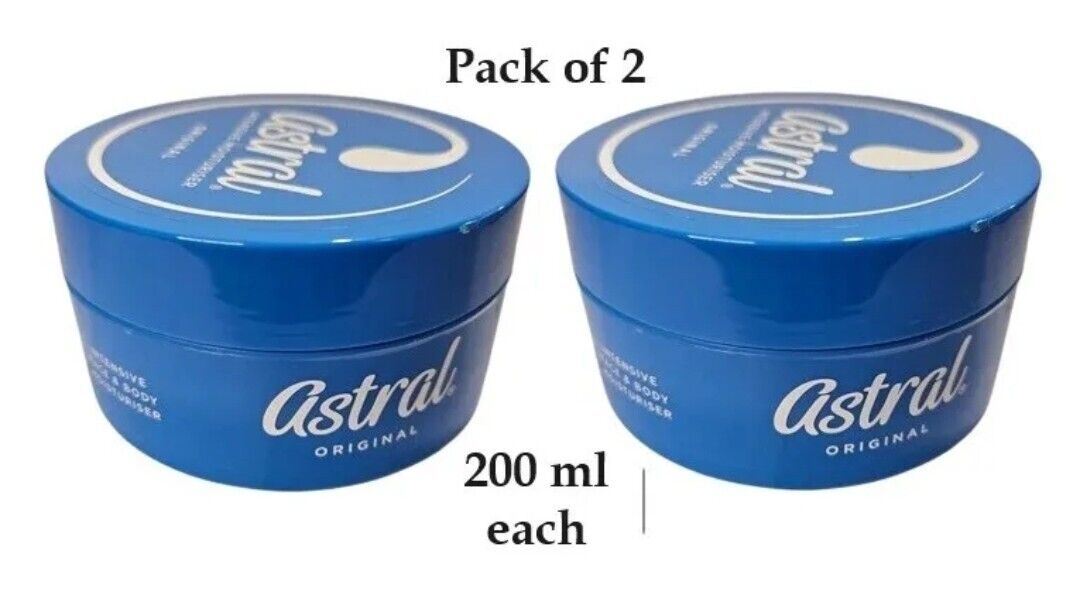 2 X ASTRAL Face & Body Intensive Moisturiser Cream 200 ml each (Pack of 2)