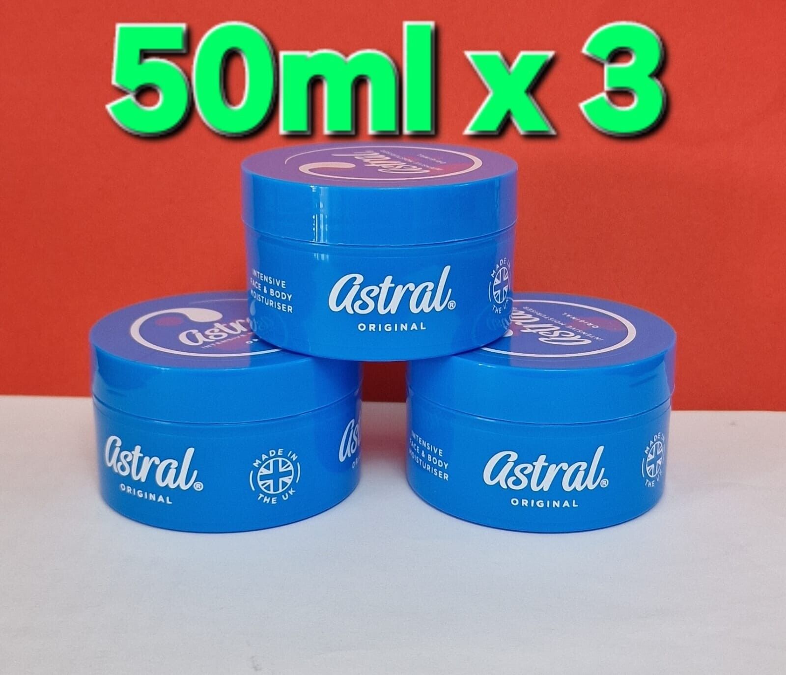 3 X ASTRAL Face & Body Intensive Moisturiser Cream 50 ml each (Pack of 3)