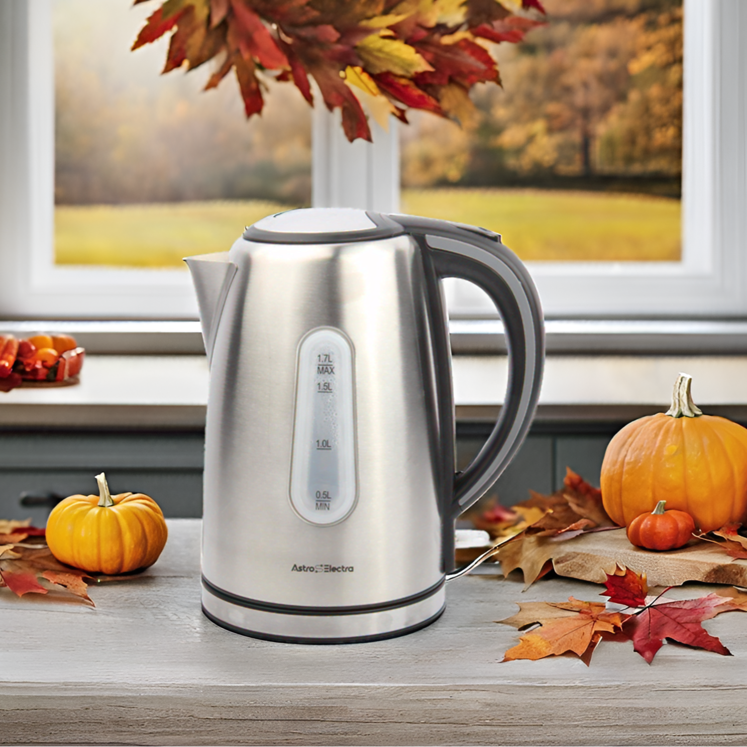 Astro Electra 1.7L Electric Kettle – 2200W Fast Boil, Stainless Steel, Cordless with 360° Base, Strix Controller, Touch Handle, Dry Burn Protection, BPA-Free.