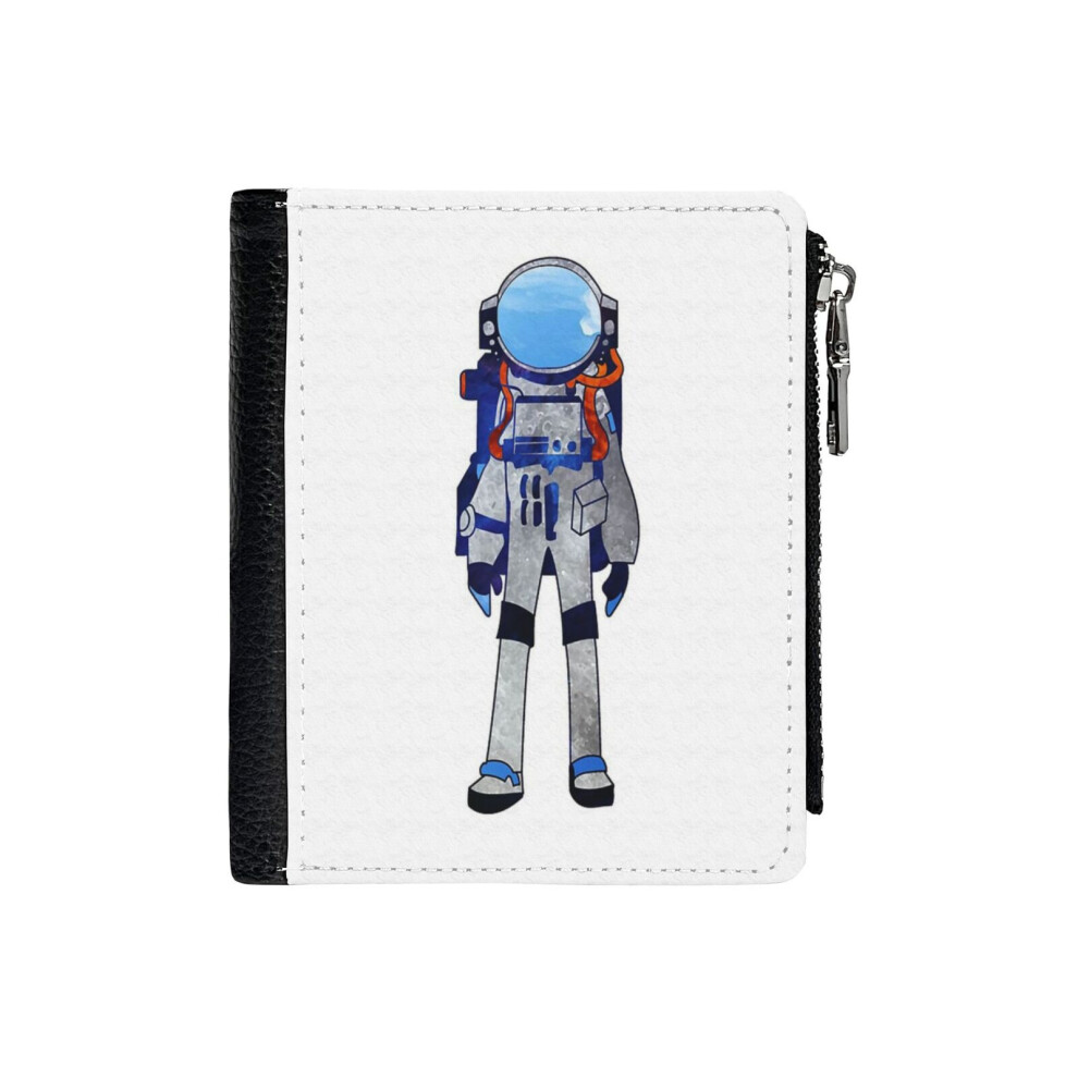 (Astroneer Astronaut - Spaced Out!_5302) Men's Women PU Leather Wallets Compact Bifold with Zipper & Multiple Card Coins Slots Black Stylish Durable G
