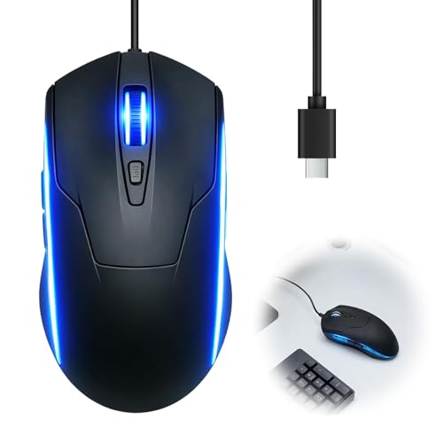 Wired USB C Mouse 6-Button Quiet Click Computer Silent Gaming Mouse-4 DPI Speeds Blue LED Ergonomic LED Backlight - Compatible with Mac Chromebook HP DELL XPS ASUS Surface Silent Gaming Mouse Type-C