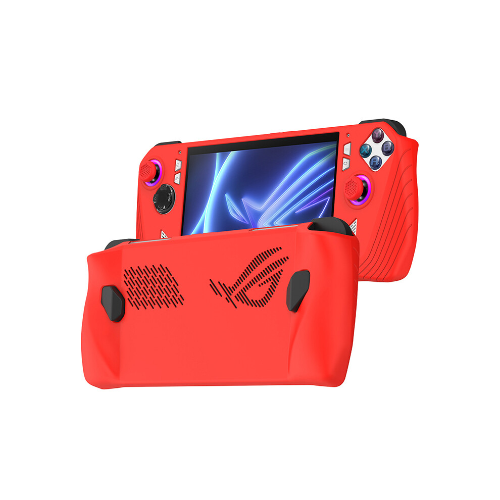 Soft Silicone Protective Cover for ASUS ROG Ally X, Handheld Console Shockproof Anti-Scratch Dustproof Protector Shell Sleeve With 2 Joystick Caps (Red)
