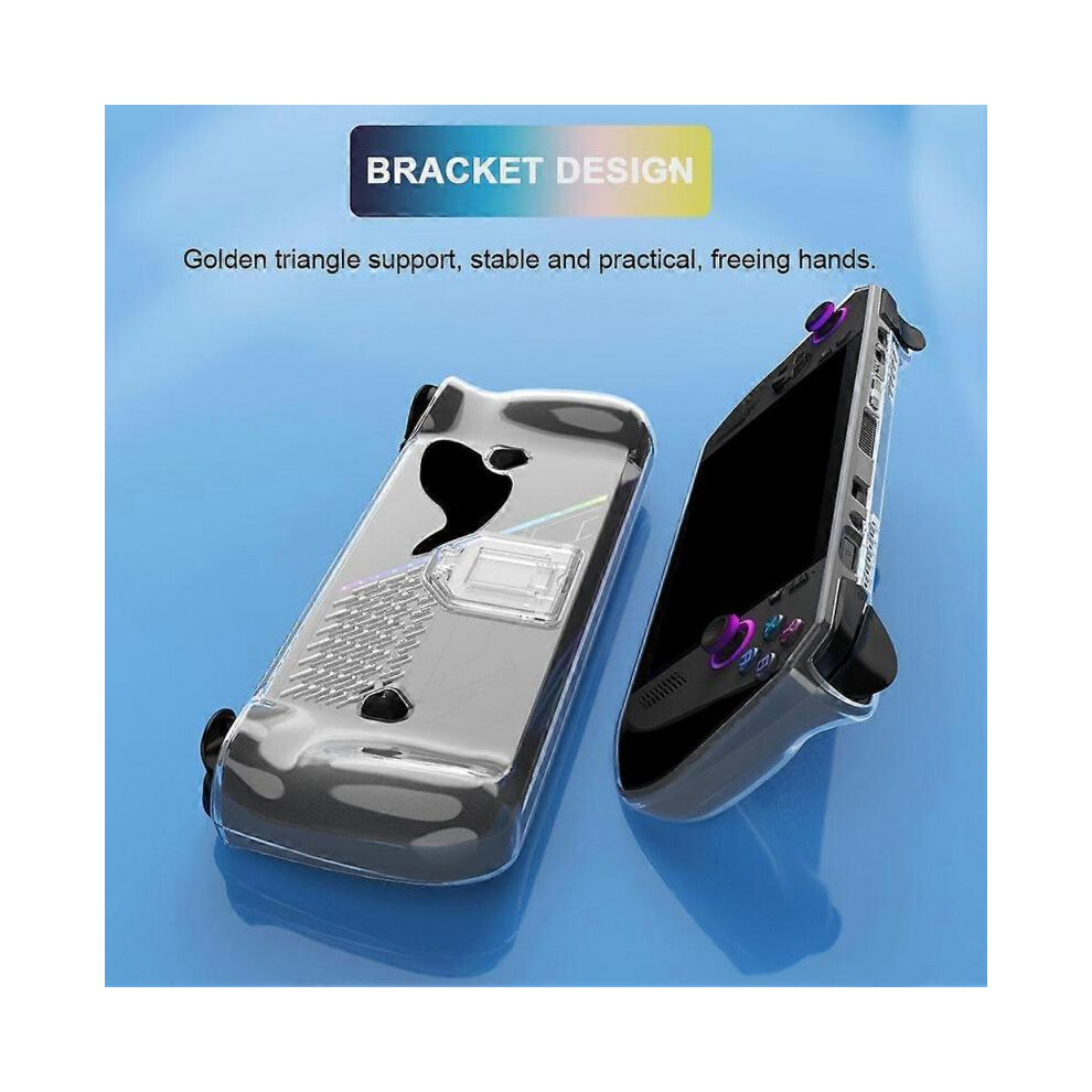 Game Console Clear Case Shockproof Prevent Slip TPU Protective Cover with Bracket for ASUS ROG Ally Handheld 2023 Transparent Blue