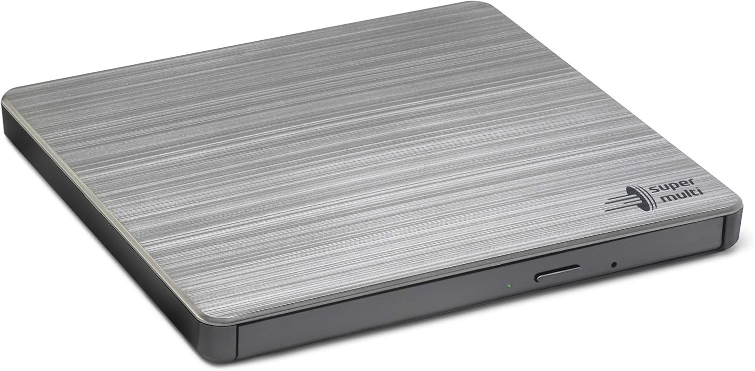 Hitachi-LG GP70 External DVD Drive, Slim Portable DVD Player/Writer for Laptop, Desktop PC, USB 2.0, Windows and Mac OS Compatible, M-Disc Support, 8x Read/Write Speed - Silver