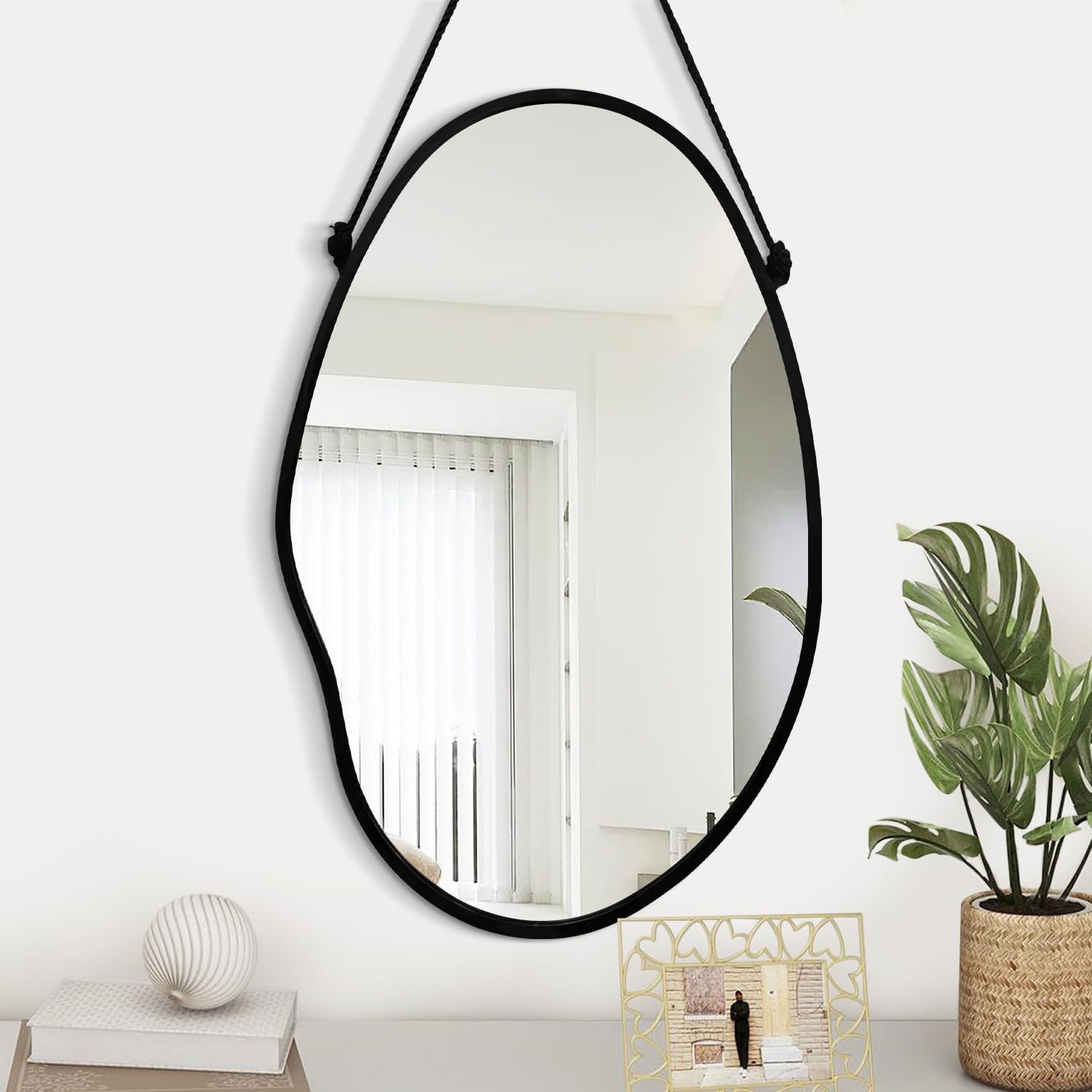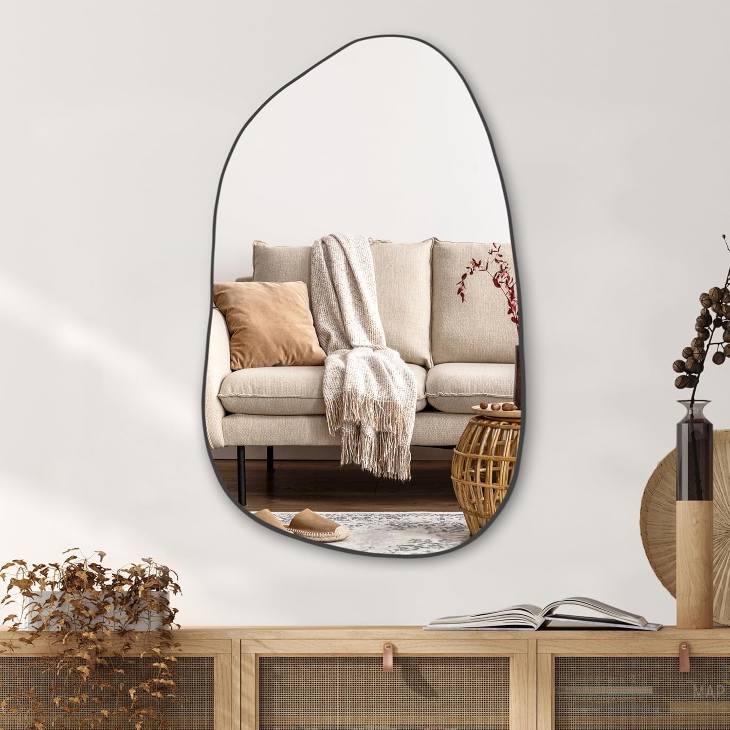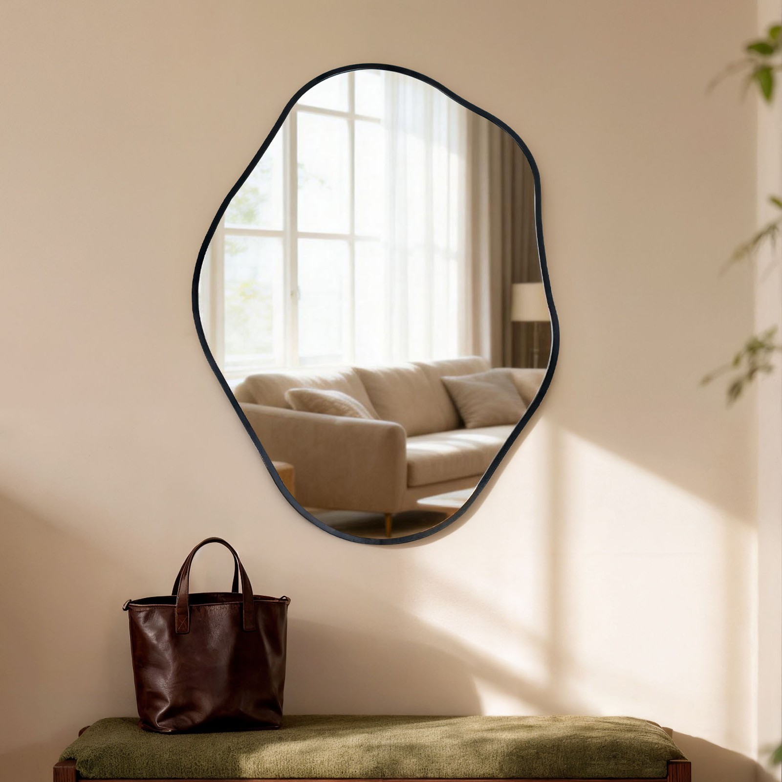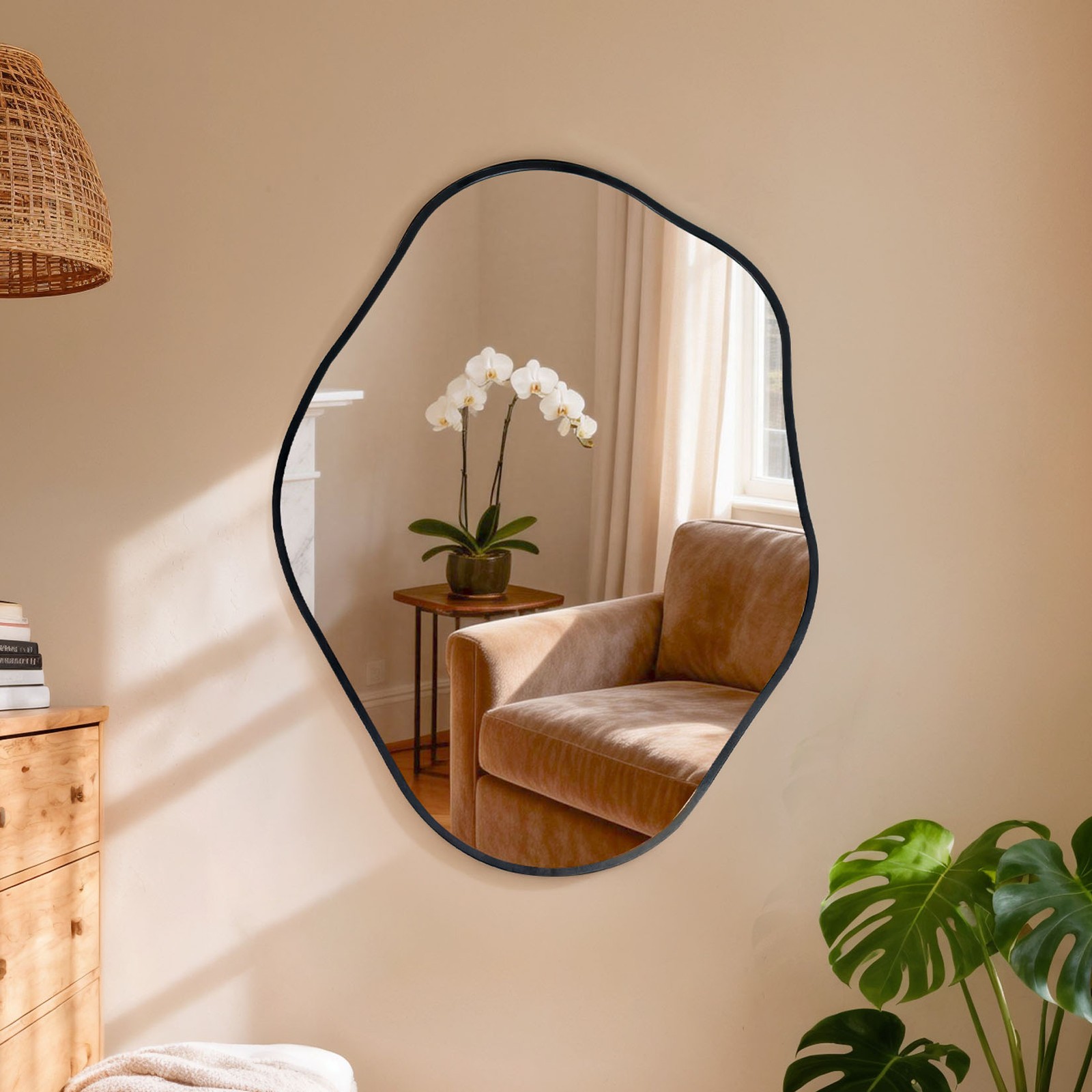 Irregular Wall Mirror Black 40 x 60cm, Asymmetrical Pebble Mirror, Metal Framed