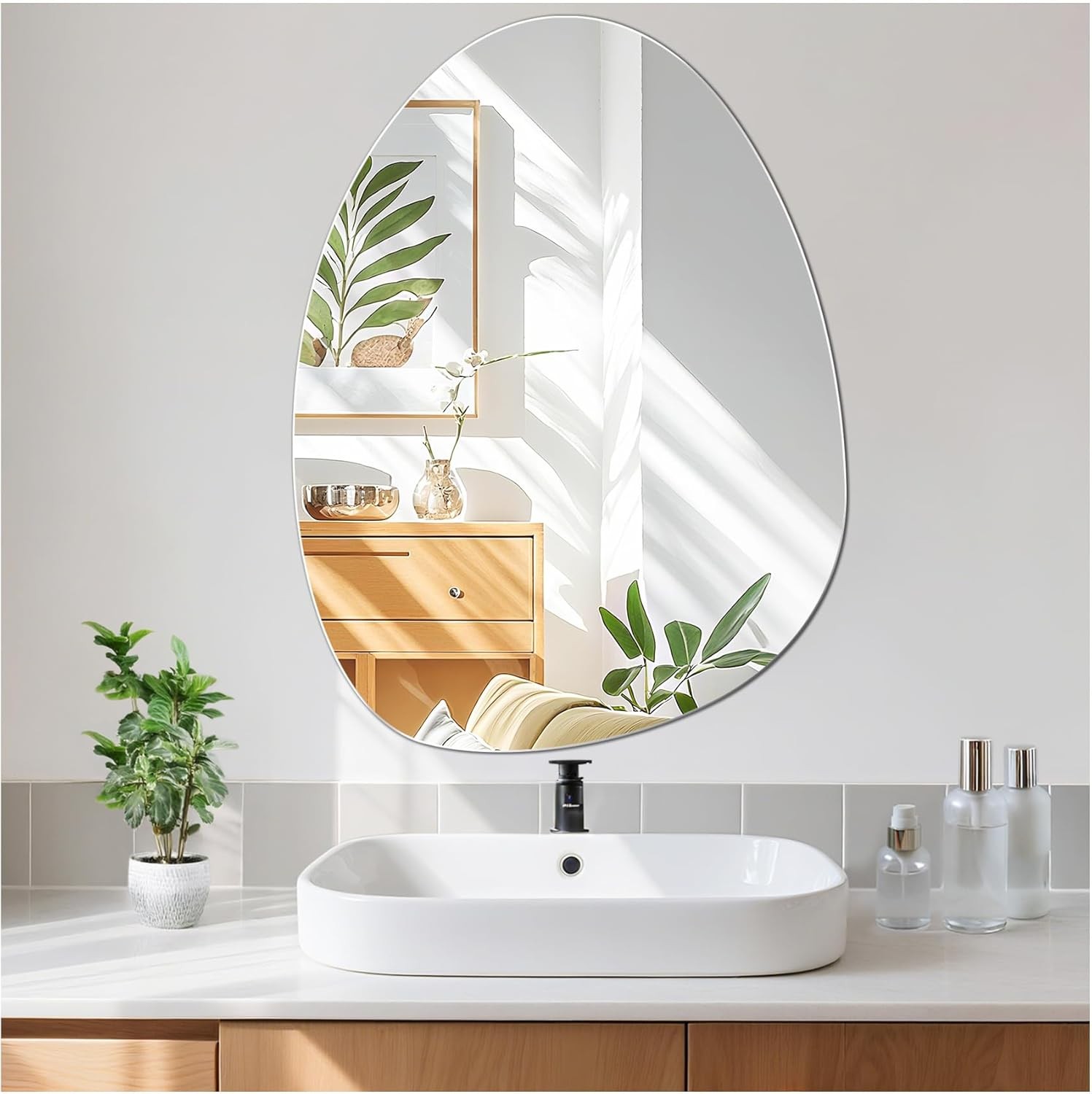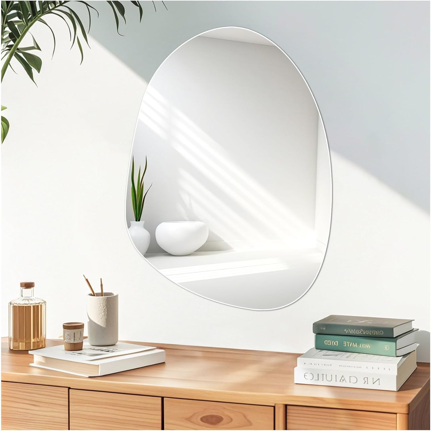 EMKE Modern Asymmetrical Wall Mirror, 60 x 45 cm, Oval Irregular Frameless Mirror, Bathroom, Bedroom, Entrance Area, Vanity