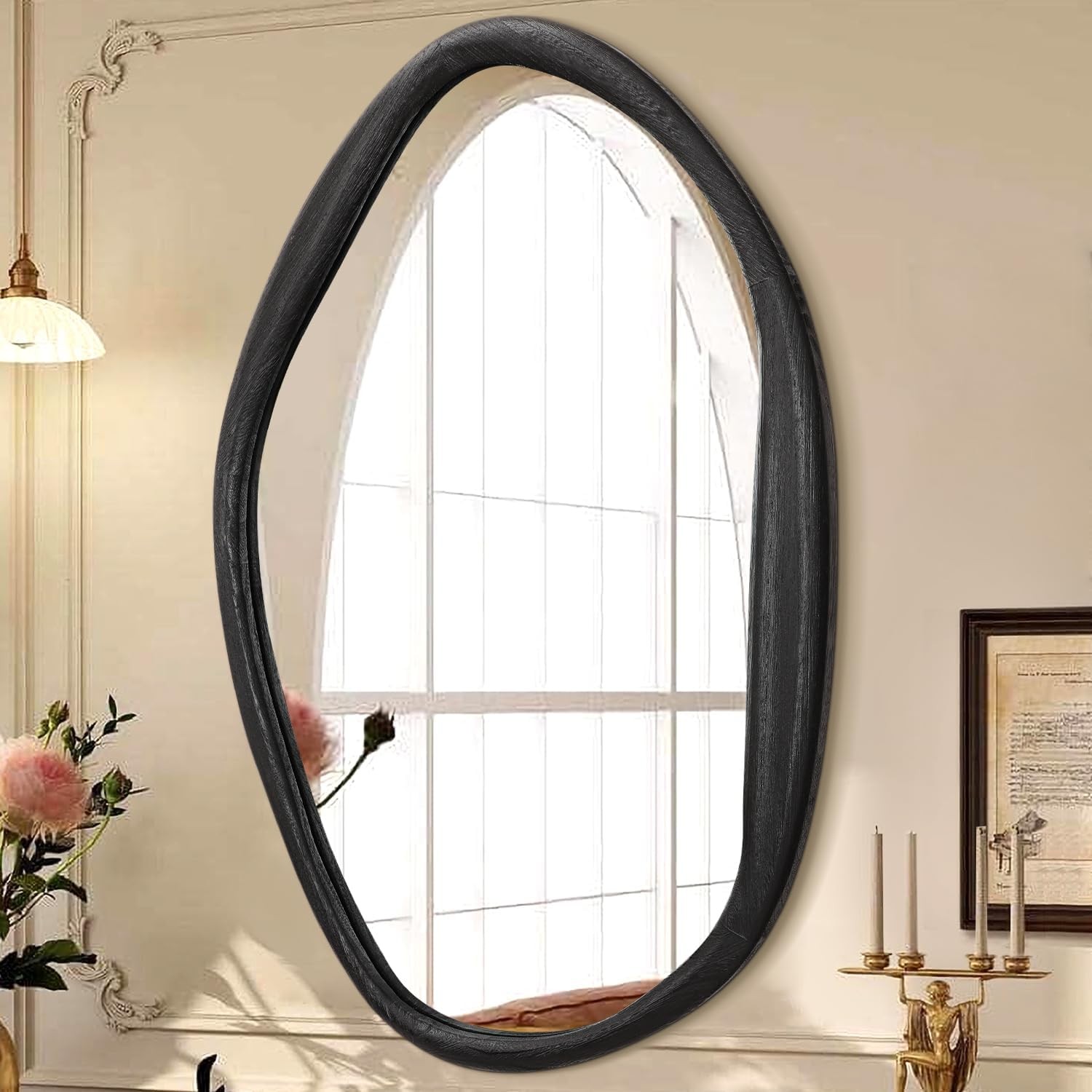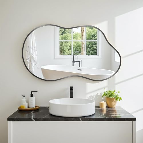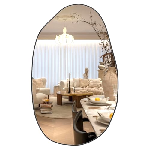 PERFNIQUE Irregular Asymmetrical Wall Mirror, 85cm x 52cm Modern Black Mirror,