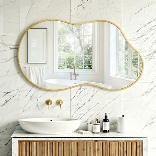 POZINO Irregular Cloud Mirror, Asymmetrical Wall Mirror, Gold Unique Shaped Wavy for Living Room Bathroom Bedroom Entryway, 30"x20.5"