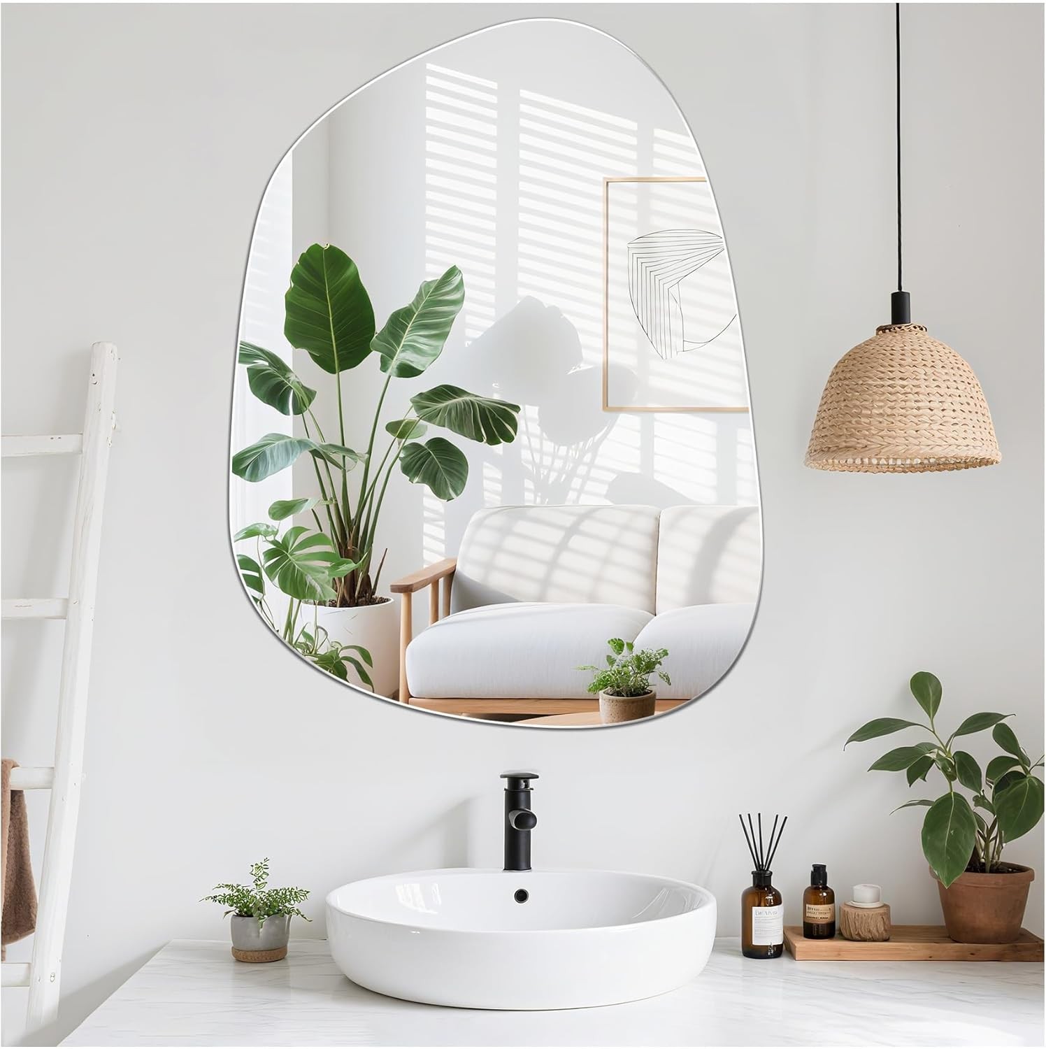 Elemango 85 x 52 cm Irregular Wall Mirror Asymmetrical Unique Cosmetic, Shaped Dressing Mirrors, Decorative for Living Room, Bathroom, Bedroom