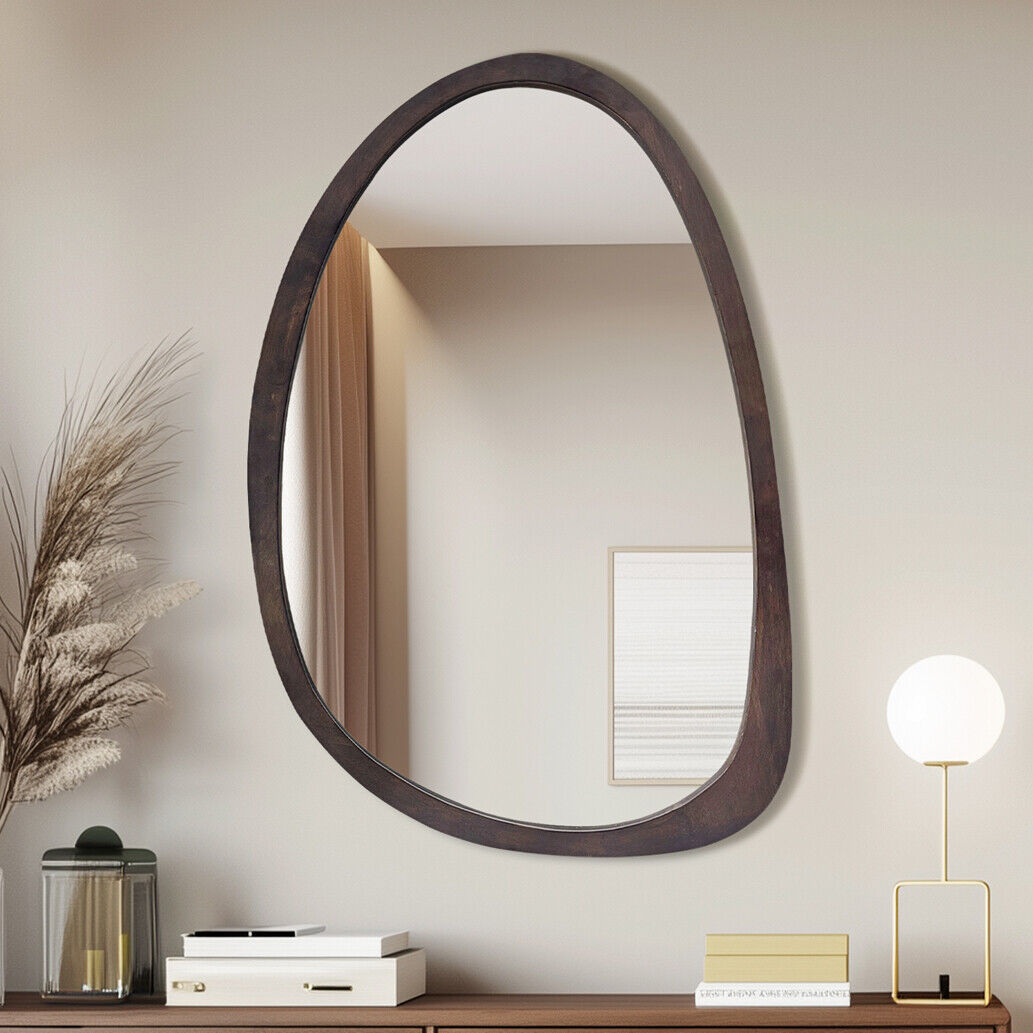 Farmhouse Irregular Asymmetrical Wall Mirror Odd Shaped Black Walnut Wood Frame