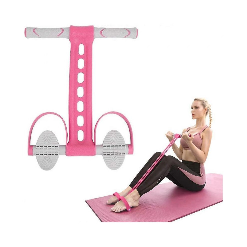 Elastic Sit Up Pull Rope with Foot Pedal - 4 Tubes Pink Pedal Resistance Band - Ideal Fitness Equipment at Home/Gym - Targeting Arms, Legs & Abdomen for Effective Slimming Training