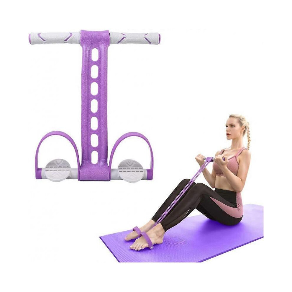 Elastic Sit Up Pull Rope with Foot Pedal - 4 Tubes Purple Pedal Resistance Band - Ideal Fitness Equipment at Home/Gym - Targeting Arms, Legs & Abdomen for Effective Slimming Training