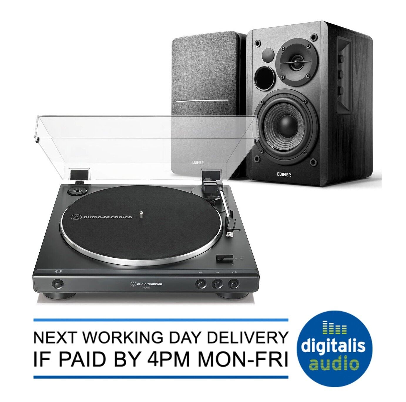 Audio-Technica AT-LP60XUSB Turntable and Edifier R1280T Black Speakers