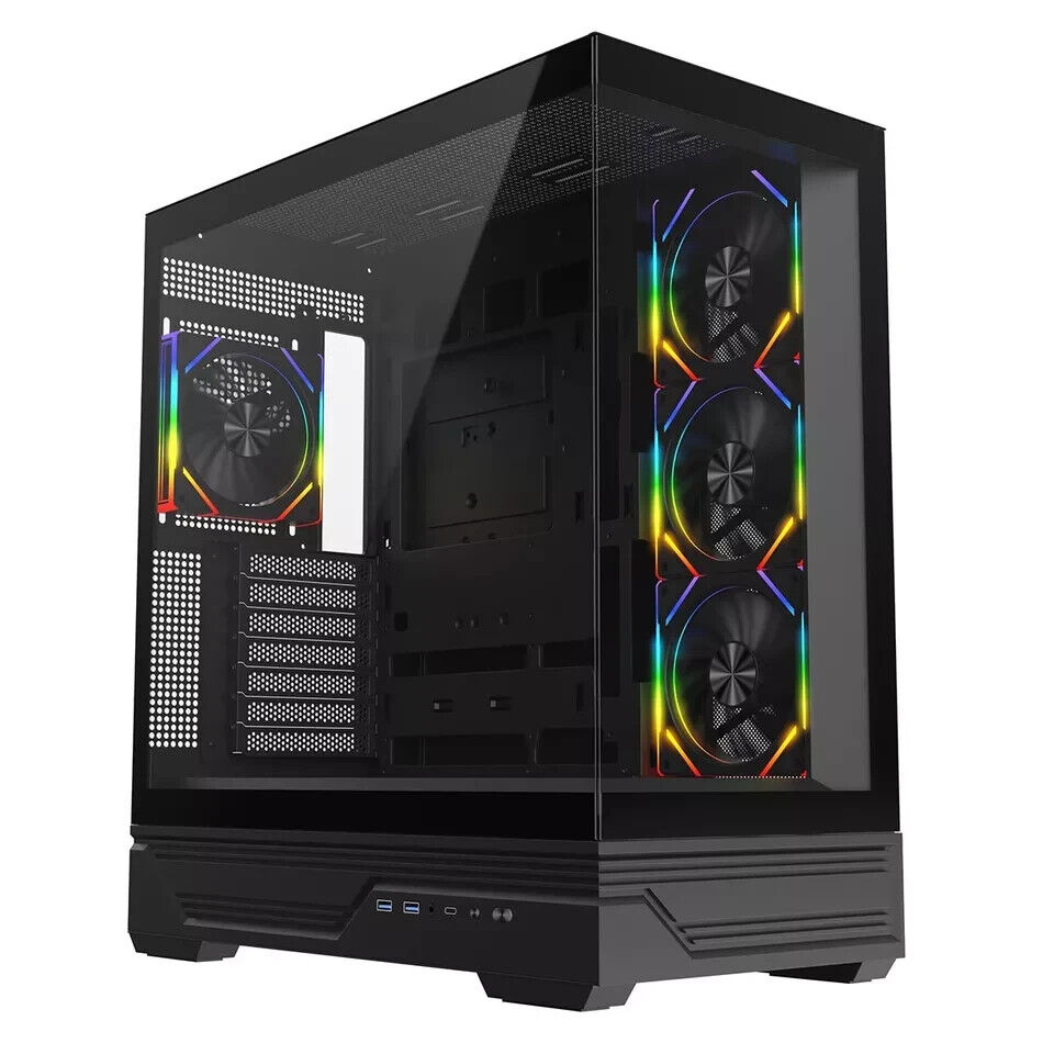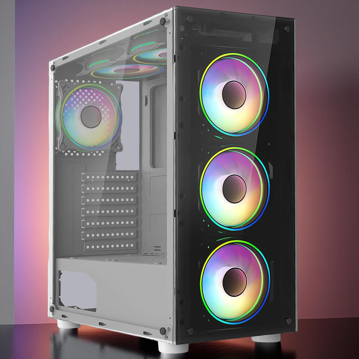Gaming PC Case 6 x ARGB LED Fans ATX Mid Tower Full Tempered Glass Panels NEW UK