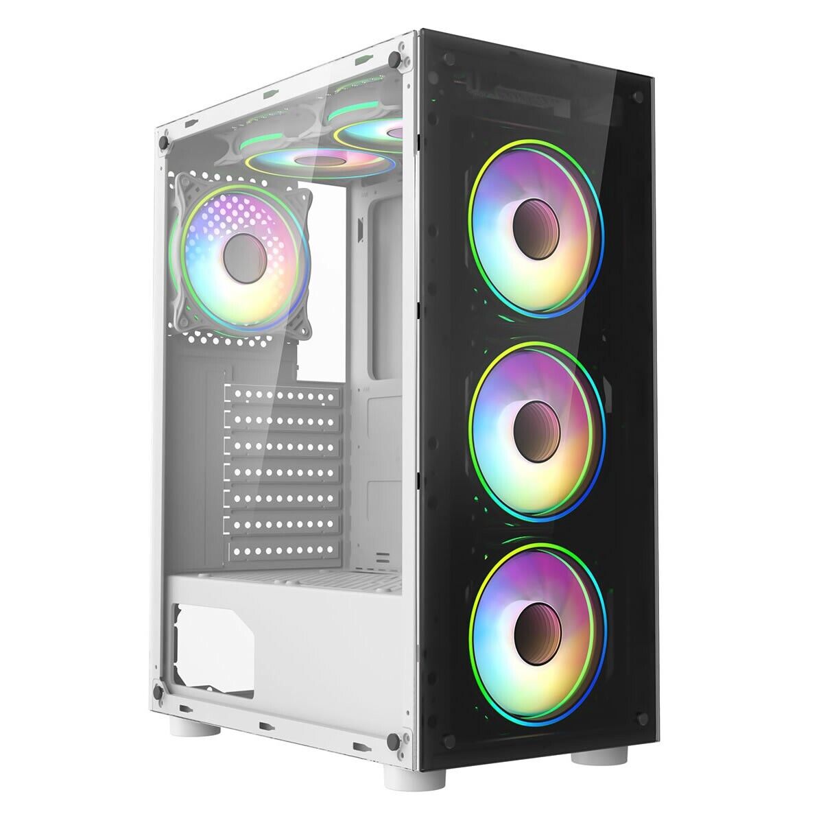 CiT Mirage White ATX Gaming Tower PC Case Full Tempered Glass Panels 6 x LED Fan