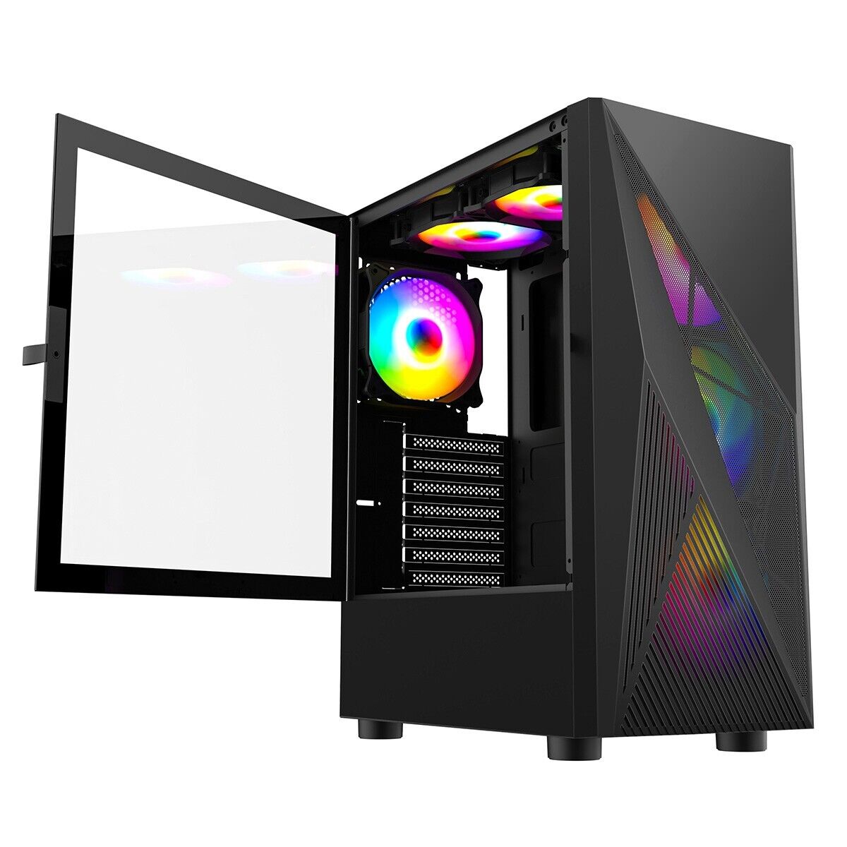 Gaming PC Case 6 ARGB LED Fans Mesh ATX Mid Tower Full Tempered Glass Panel NEW
