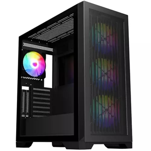 PC Gaming Case CIT Mid ATX Tower With 6 x ARGB LED Fan Full Tempered Glass Panel