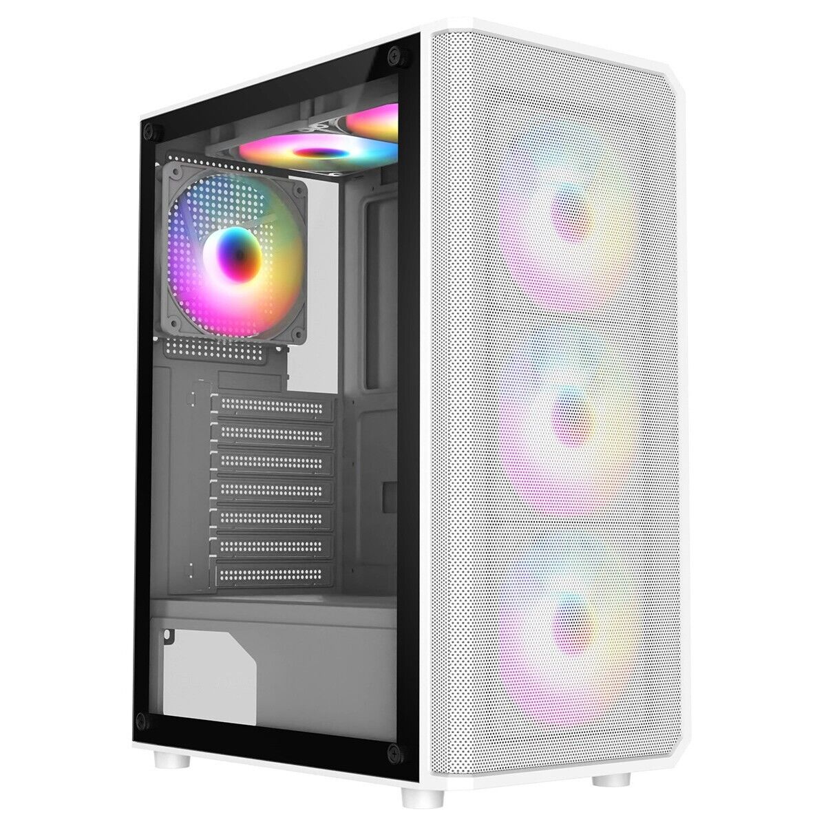 CIT Delta ATX Gaming PC Case White Mesh Mid Tower 6x A-RGB Fans Full Glass Panel